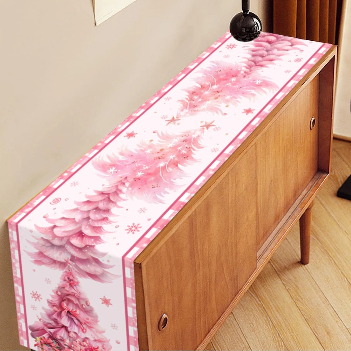 Pink Christmas Table Runner Snowman Santa Claus Merry Christmas Decorations For Home 2025 Navidad Noel Gift New year Tablecloth