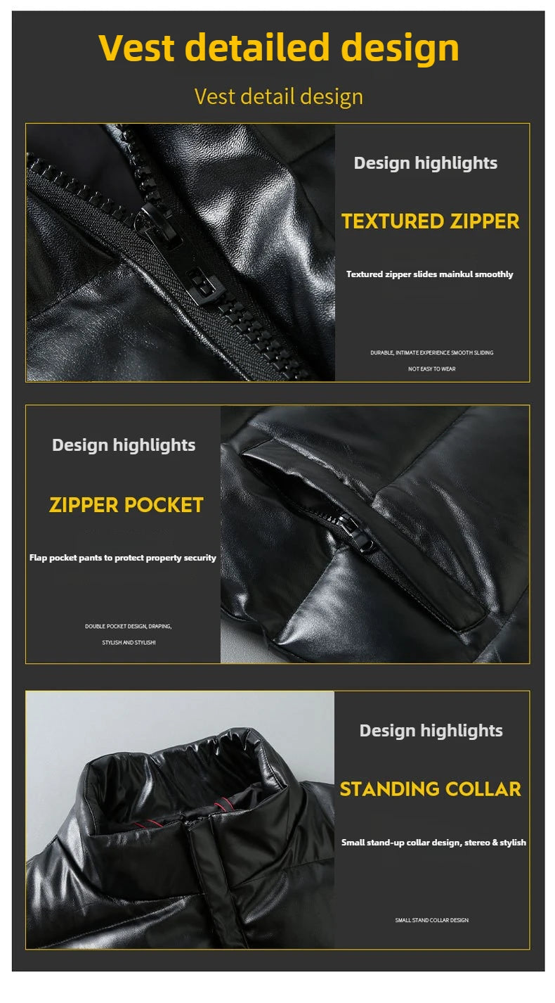 MAINKULCN Weste Winter Warm Ohne Ärmel - Größe XXXXXL PU Leder Wasserdicht Hochwertig – Schutz und Stil für kalte Tage