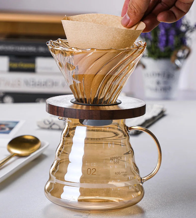 Pour Over Coffee Dripper Coffee Pot Set 600ml Coffee Server Coffee Maker Brewing Cup V02 Glass Coffee Funnel Drip Coffee Set