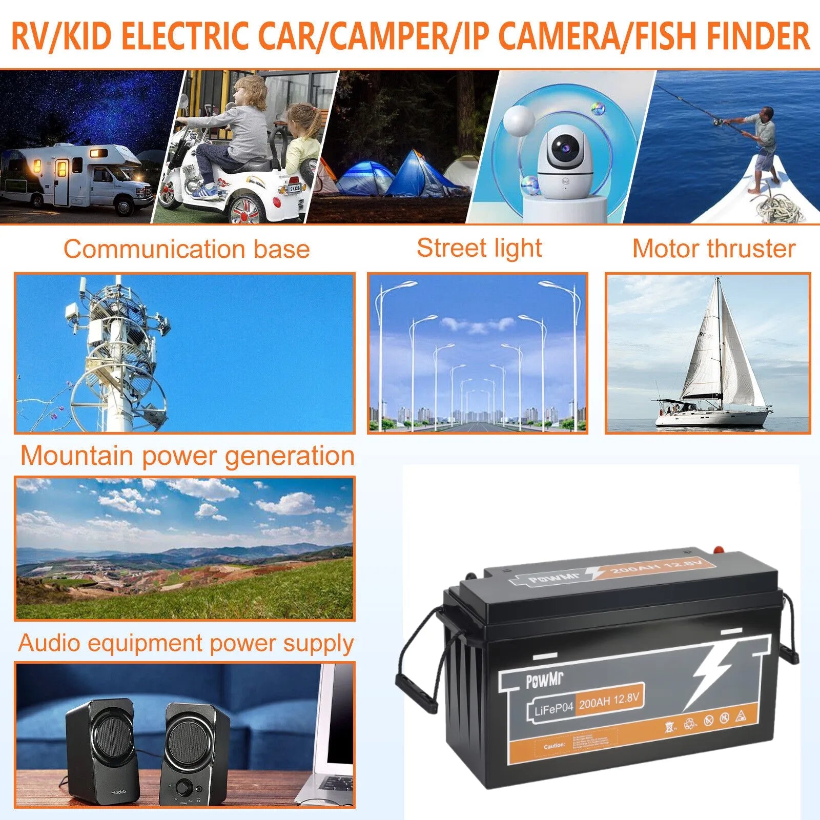 PowMr 12,8V 200AH LiFePO4-Batterie wiederaufladbar Grade A-Zellen 2560WH eingebauter BMS 6000+ Zyklus Heim-Lithium-Batterie-Energiespeicher