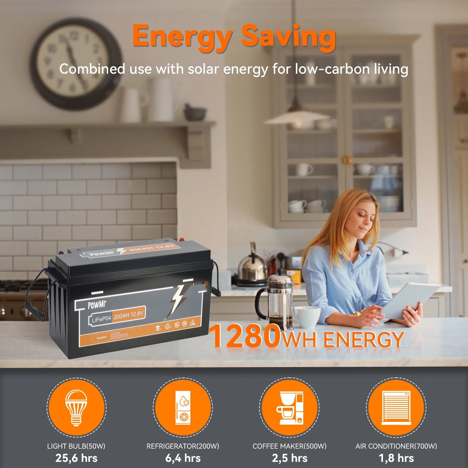 PowMr 12,8V 200AH LiFePO4-Batterie – zuverlässige Heim-Energiespeicherung mit hoher Lebensdauer