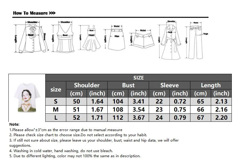 - 1 x Print T-Shirt Woman Short Sleeve Top (wie beschrieben)