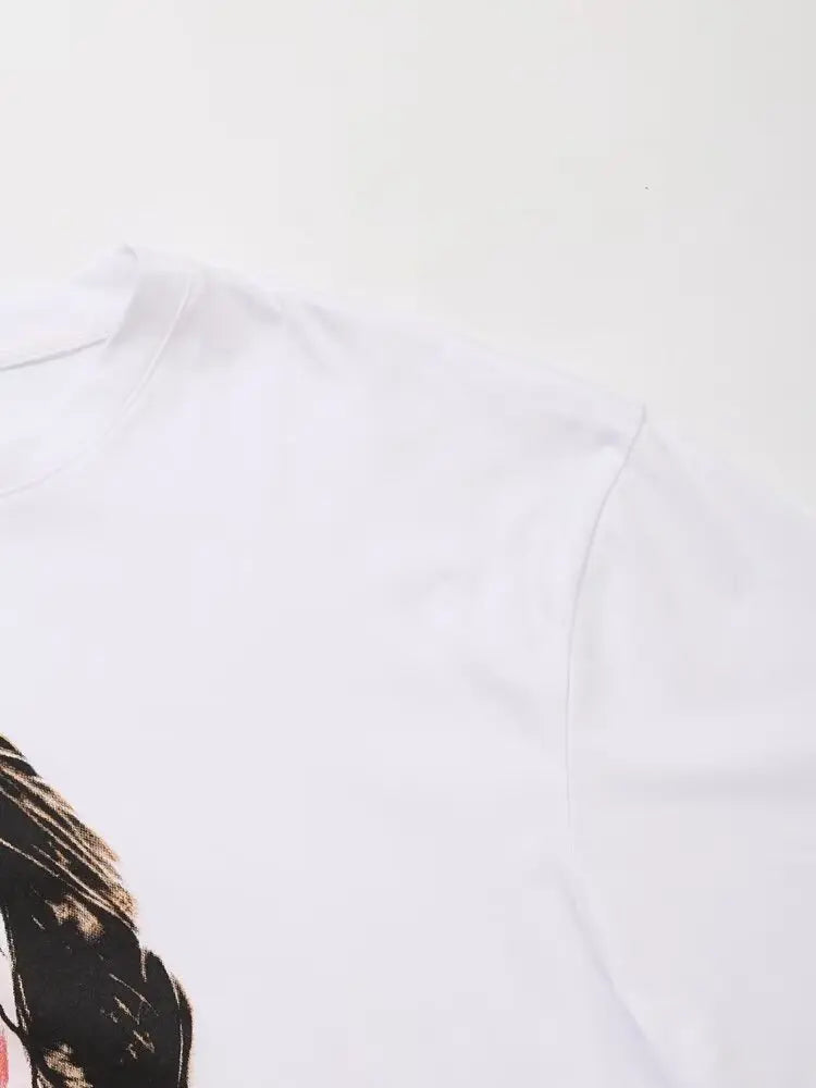 Print T-Shirts Woman Summer 2024 Short Sleeve Top Y2k Basics Letter Tops O-Neck Women Tops Women's Graphic T-shirt