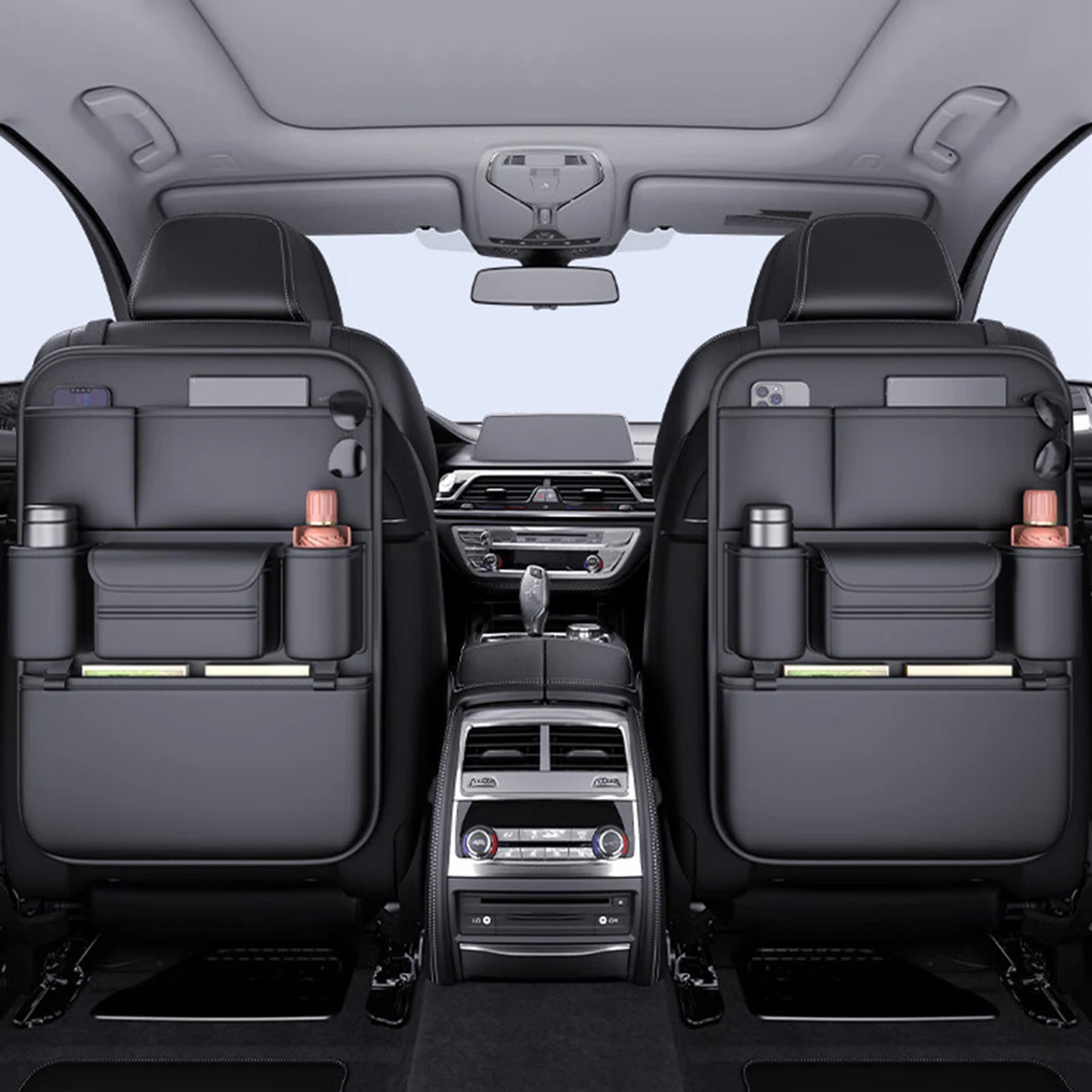 Praktische Rücksitz-Aufbewahrung, die Ihr Fahrzeug organisiert, Platz schafft und einfache Erreichbarkeit für alle Insassen bietet.
