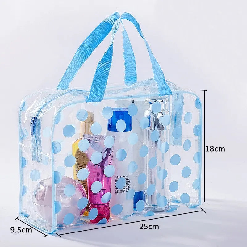 Klare Sicht, zuverlässiger Schutz: Diese wasserdichte PVC-Tasche kombiniert Transparenz mit robustem Material, damit Ihre Bad- und Sportutensilien jederzeit trocken, organisiert und leicht zugänglich bleiben.