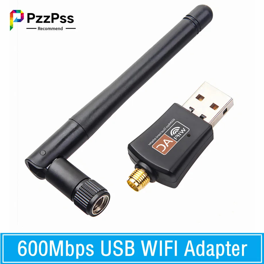 PzzPss Dual Band 600Mbps USB WIFI Adapter 2.4GHz 5GHz WiFi With Antenna PC Mini Computer Network Card Receiver For PC Laptop