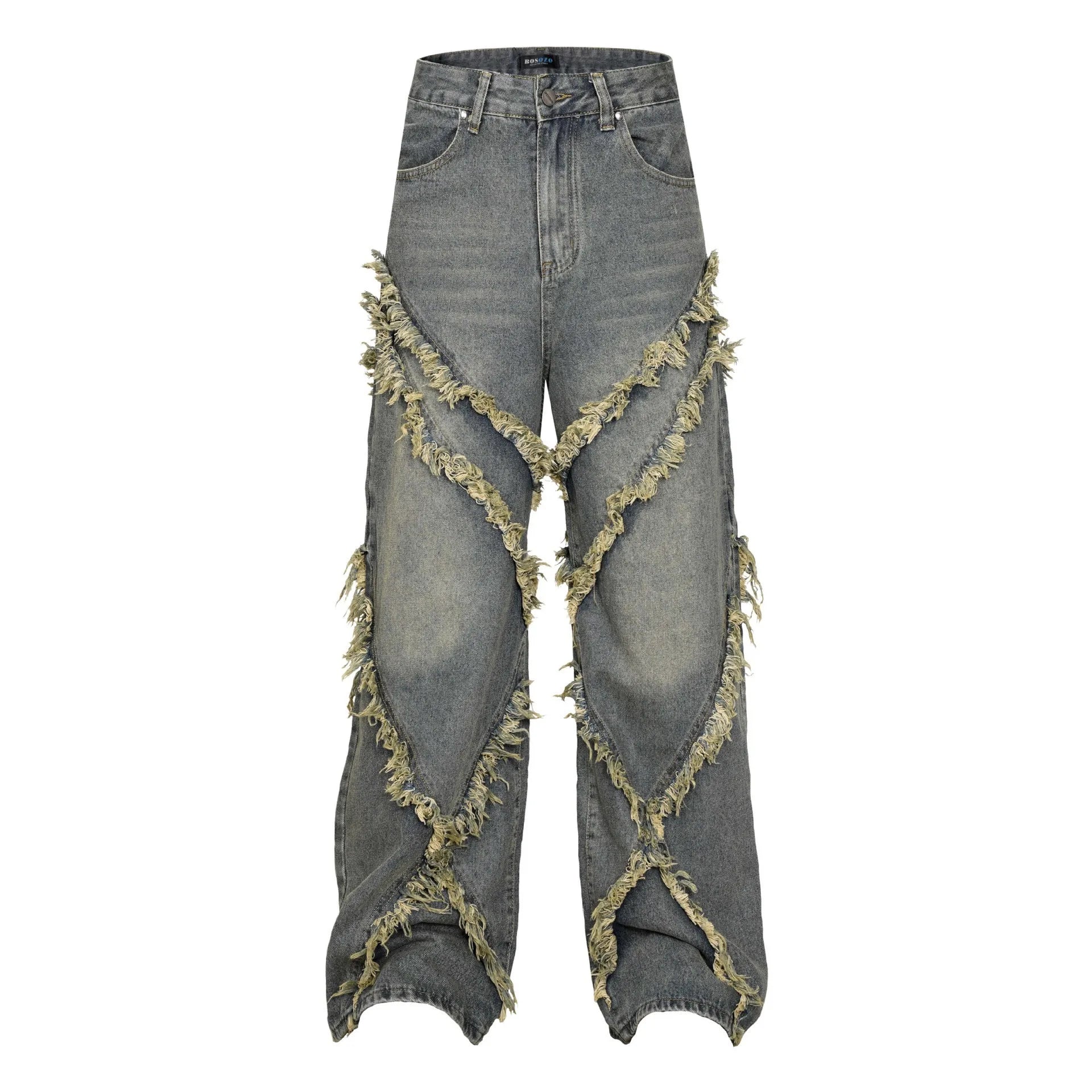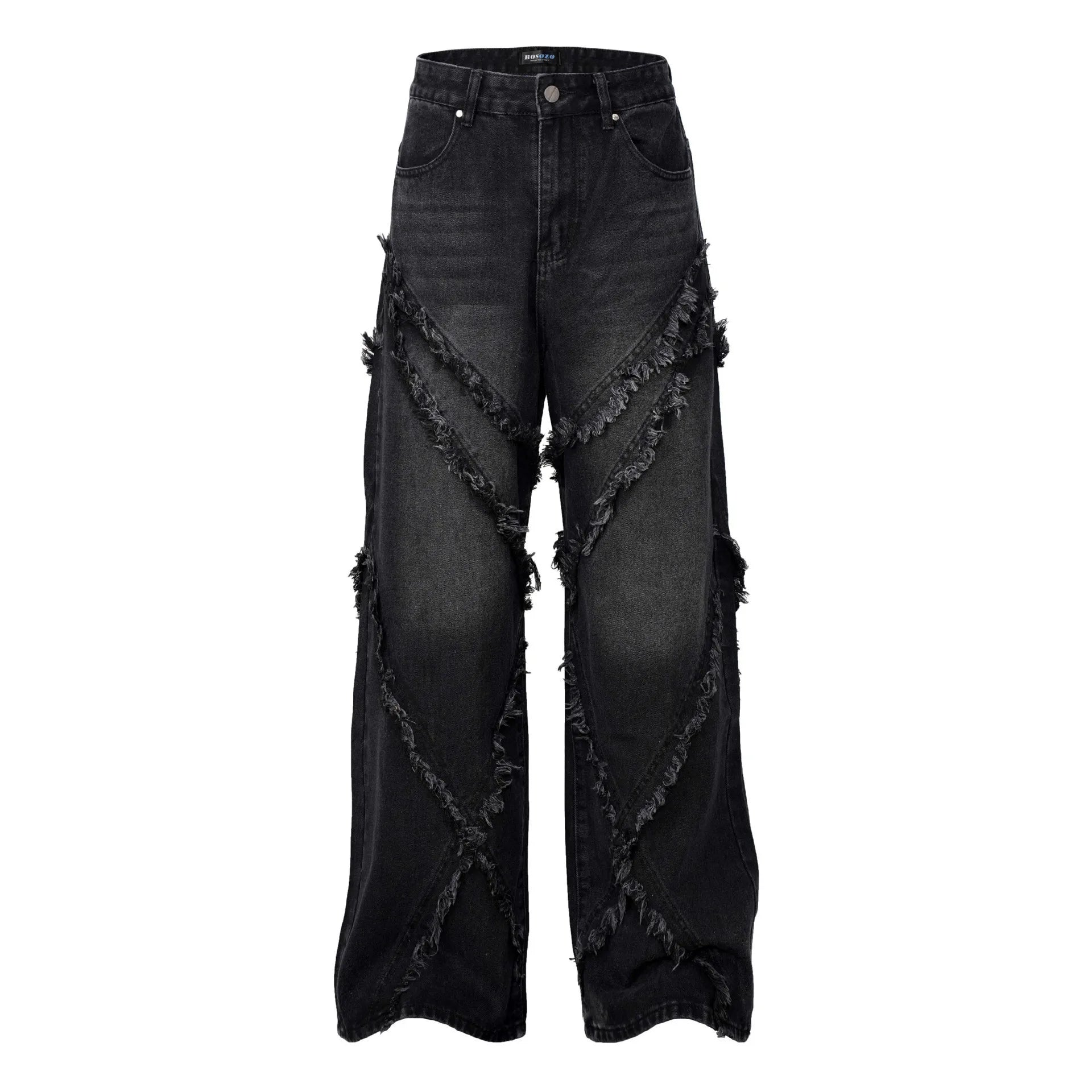 Raw Edges Black Jeans Men Clothing Fashion Street Harajuku Hip Hop Vintage Jeans for Men Casual Versatile Pants Baggy Jeans