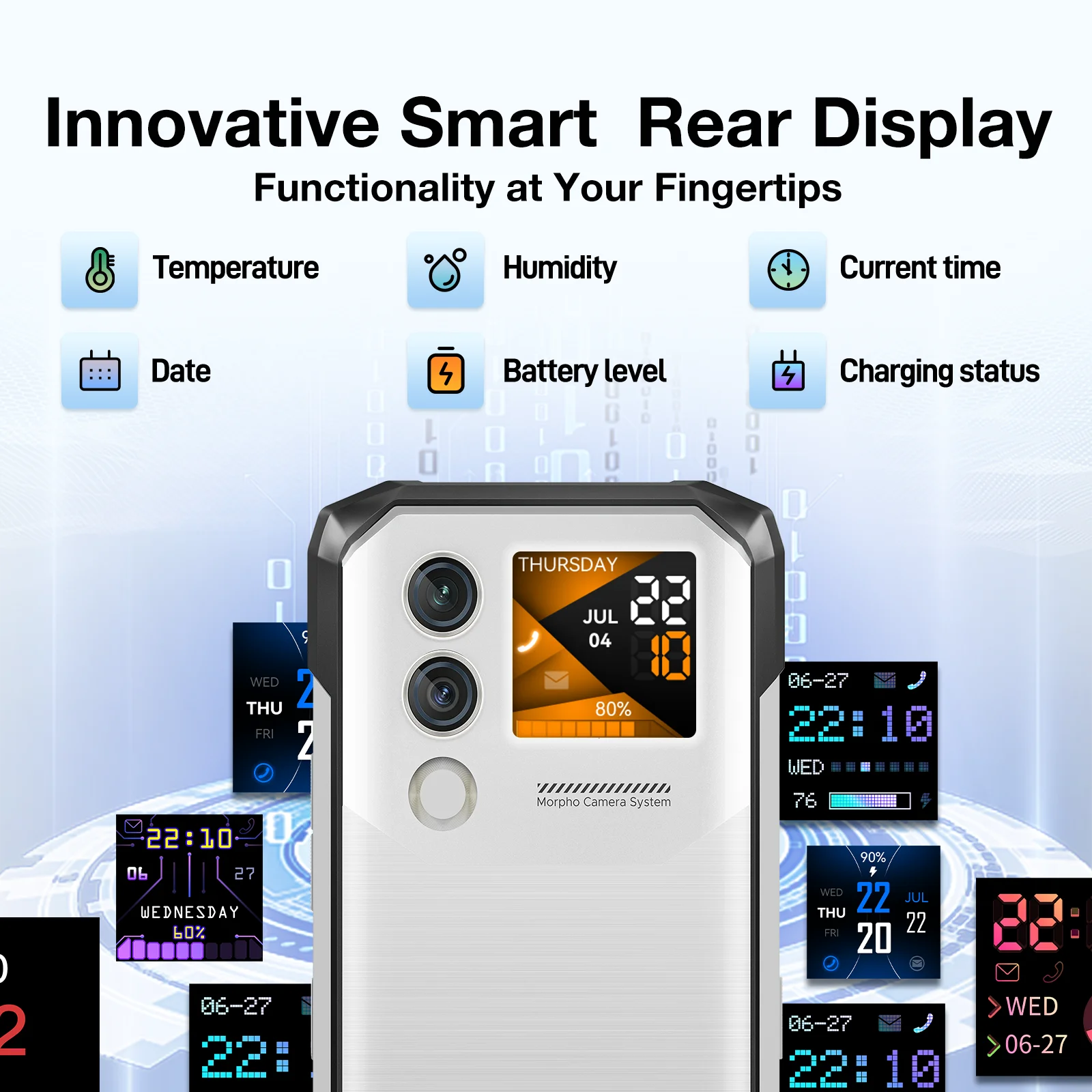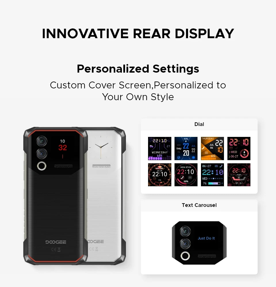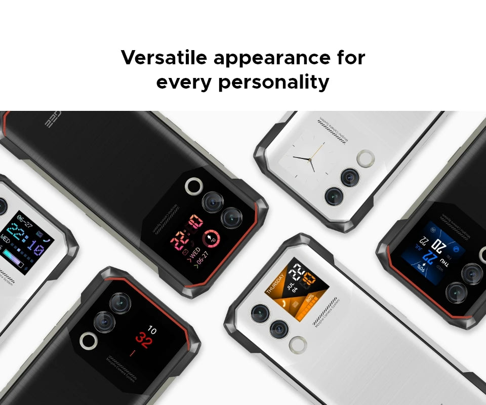 - Das rückseitige 1,54-Zoll-Display bietet schnelle Statusupdates, ohne das Hauptdisplay öffnen zu müssen.