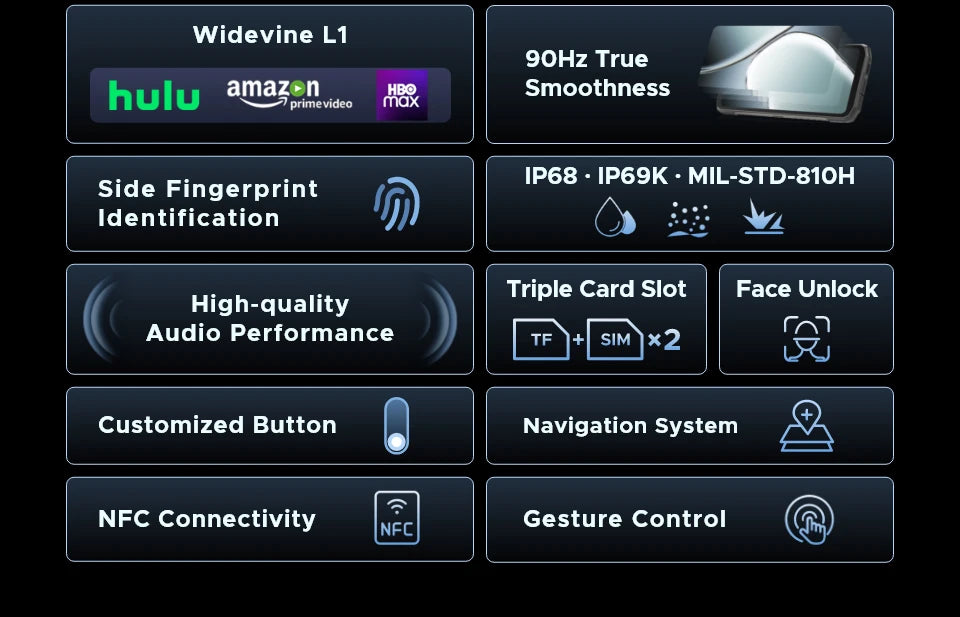 - Outdoor – ausdauernder Akku, sichere Entsperrung und sichere Datenspeicherung