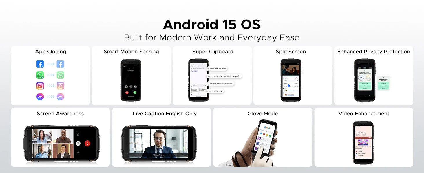 - Ein veraltetes Betriebssystem kann Sicherheitslücken haben – Android 15 sorgt für aktuelle Sicherheitsupdates und bessere App-Kompatibilität.