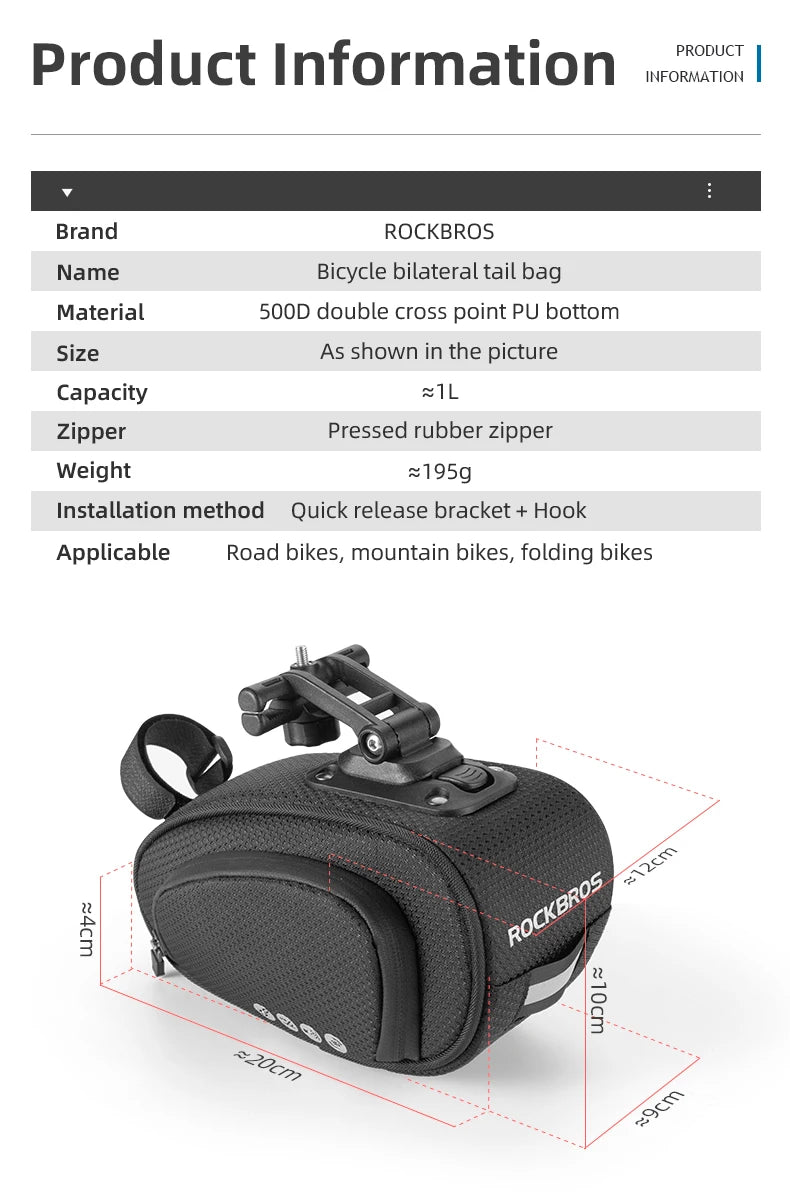 ROCKBROS Rainproof Bicycle Bag Shockproof Bike Saddle Bag For Refletive Rear Large Capatity Seatpost MTB Bike Bag Accessories