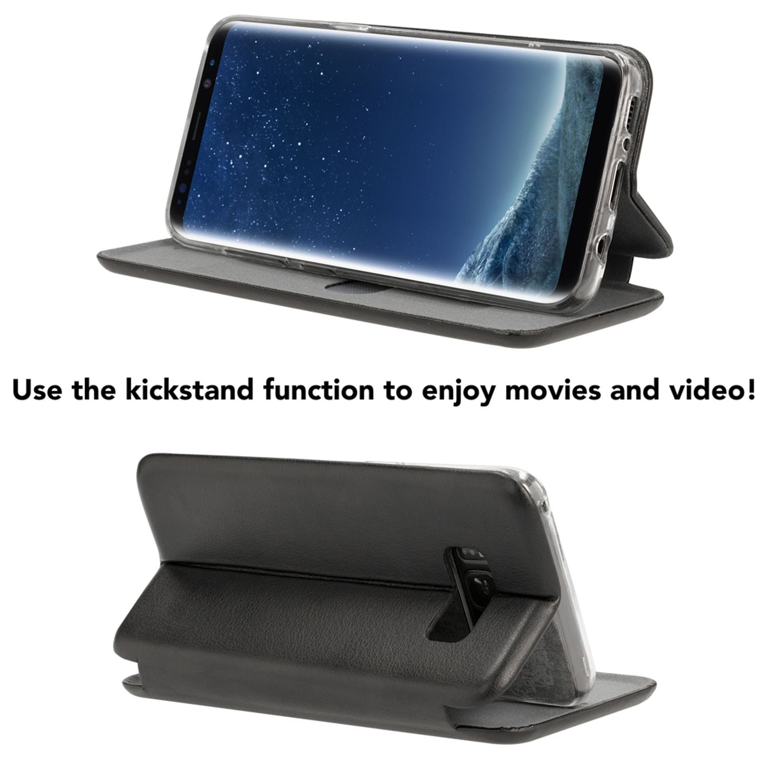 Samsung Galaxy S8 Klapphülle von NALIA, Slim Handy-Hülle Flip-Case Kunst-Leder Vegan Cover mit Magnet, Etui Ganzkörper Schutz Dünne Hinten Vorne Rundum Handy-Tasche Bumper für Samsung-S8 - Schwarz