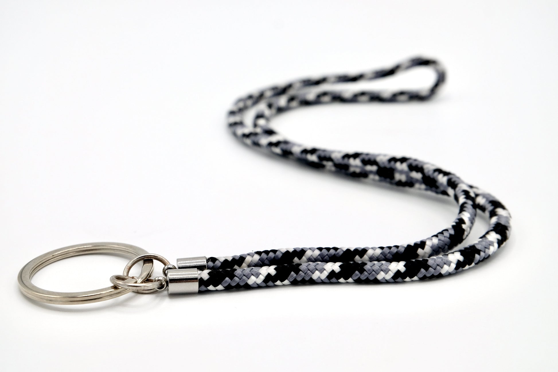 Entdecke unser Schlüsselband aus robustem PPM-Seil, ausgestattet mit einem Schlüsselring und eleganten Edelstahl-Endkappen. Perfekt zum Umhängen oder zum Befestigen an deiner Gürtelschlaufe oder Handtasche!