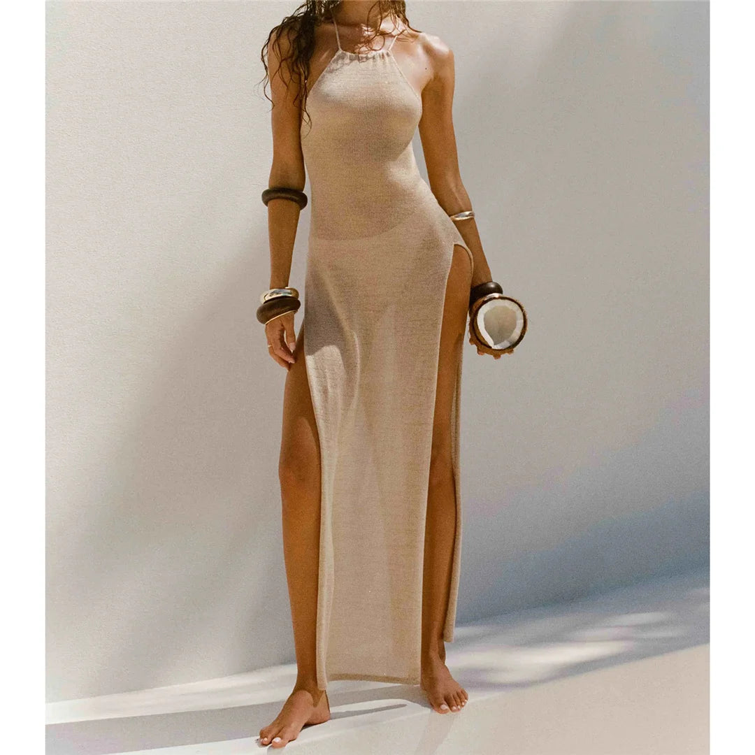 Elegant 12 Farben High Slit Häkel Gestrickt Maxi Kleid – Vielseitiges Strand-Cover-Up für stilvolle Urlaubsmomente