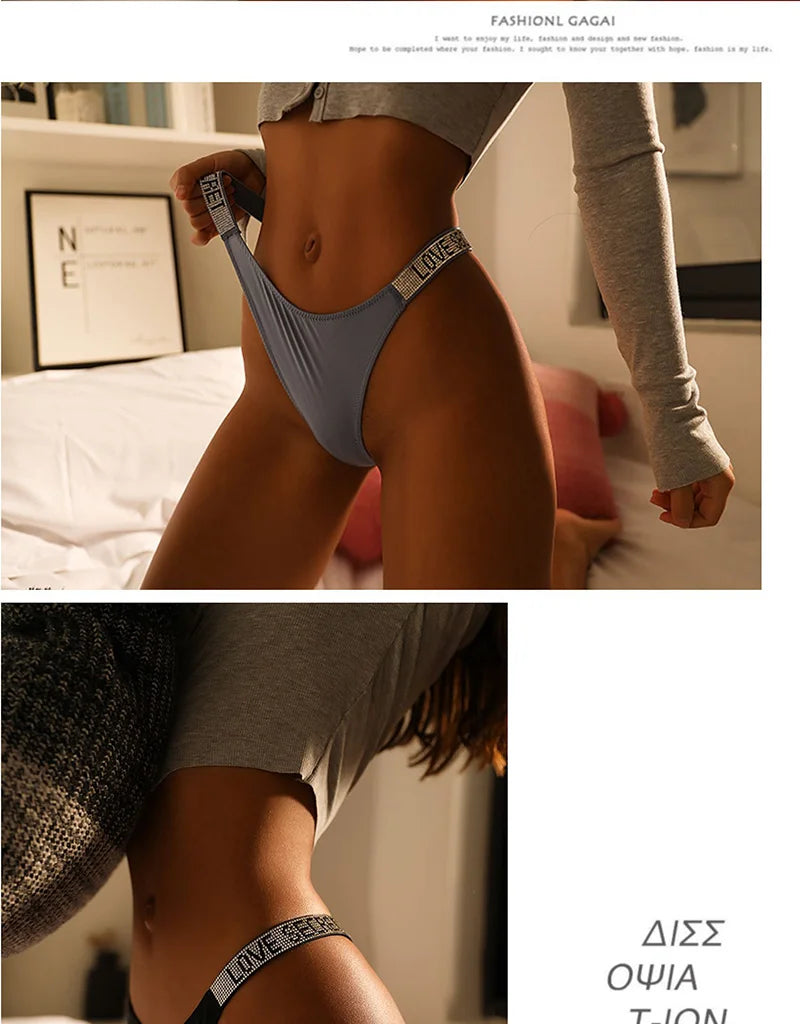 ZQTWT Damen-Unterwäsche 2025 - Elegante Sport-Strings mit Strass & Buchstaben tief sitzend S-XL