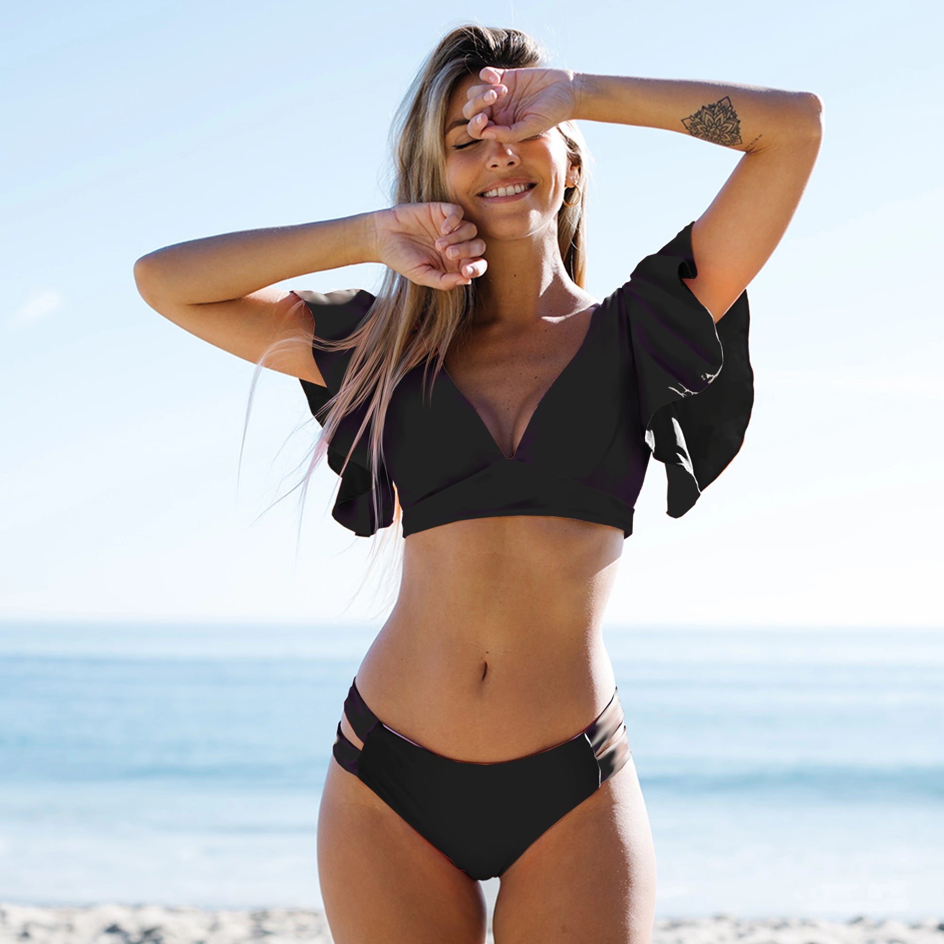 Ein feminines Bademoden-Set, das Rüschen-Design und bequemen Sitz verbindet, damit Sie sich am Strand oder Pool jederzeit sicher und stilvoll fühlen.