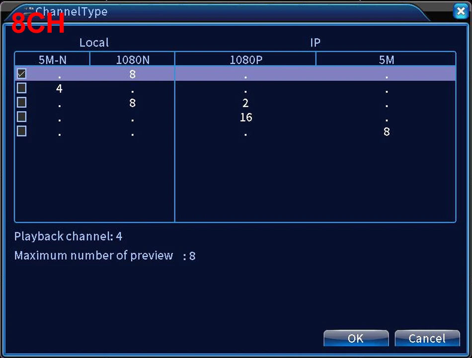 - Kanaloptionen: 4CH oder 8CH (konfigurierbar)