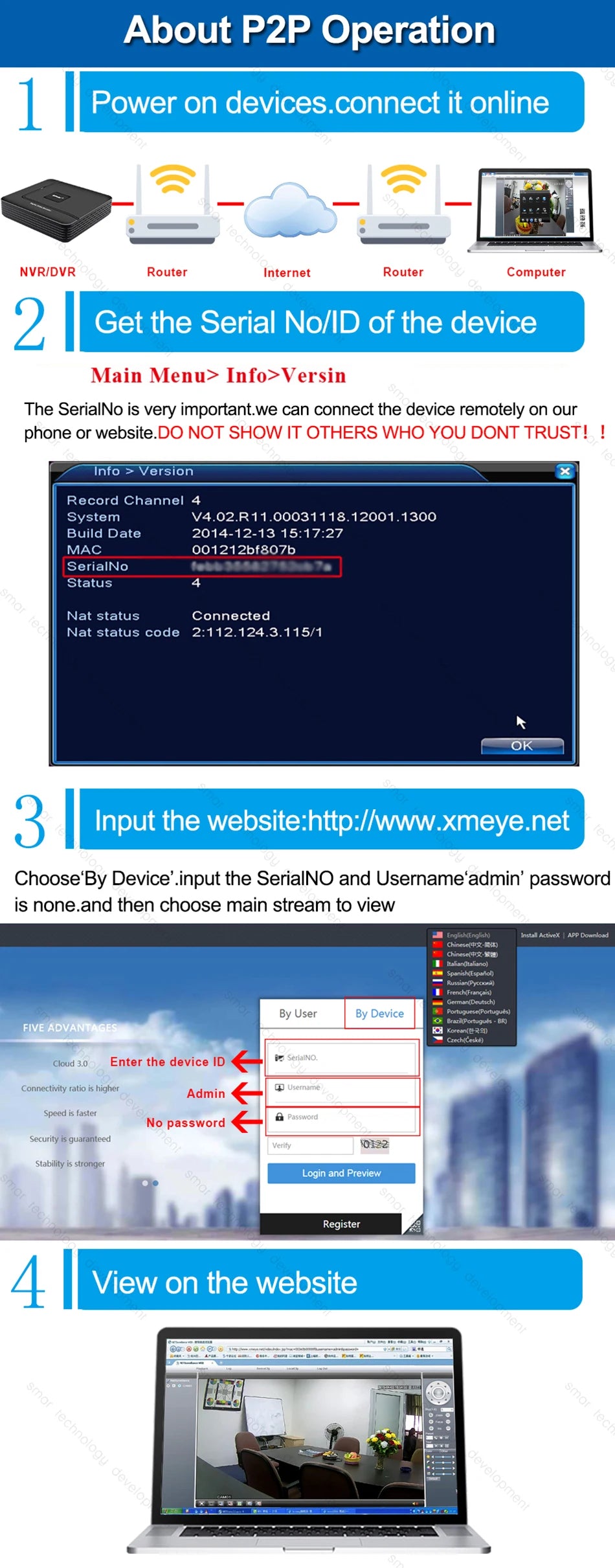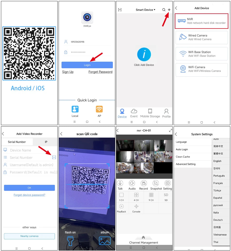 - Remote-Zugriff per Smartphone, Tablet oder PC für Live-Ansicht und Wiedergabe von jedem Standort aus.