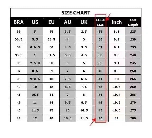 - Verfügbare Größen: EU 35–43 (bitte Größentabelle beachten)