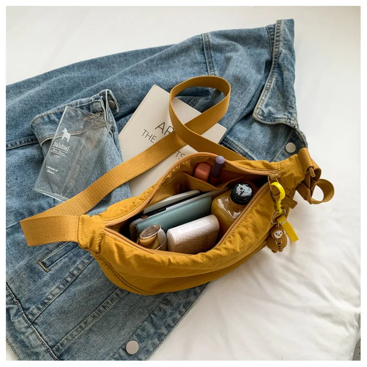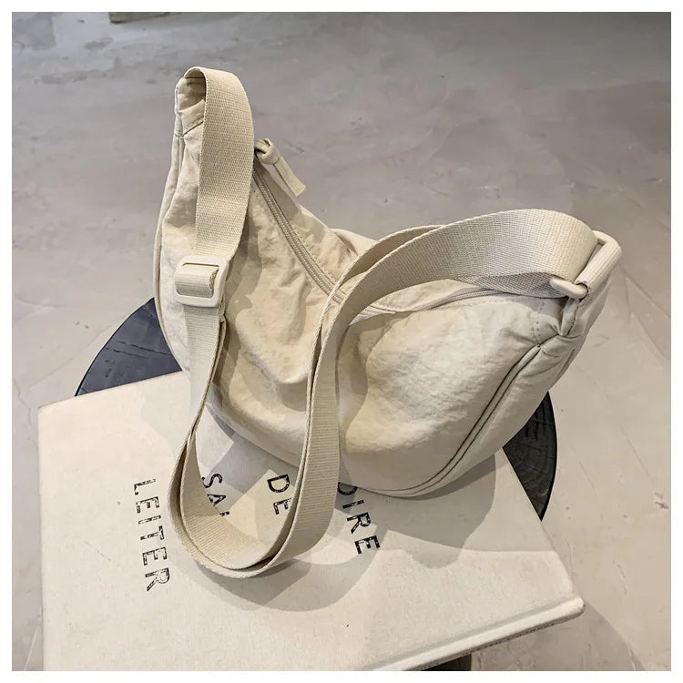 Solid Color Women's Portable Shoulder Bag Simple Female Nylon Cloth Padded Crossbody Bags Travel Purse Handbags Messenger Bag