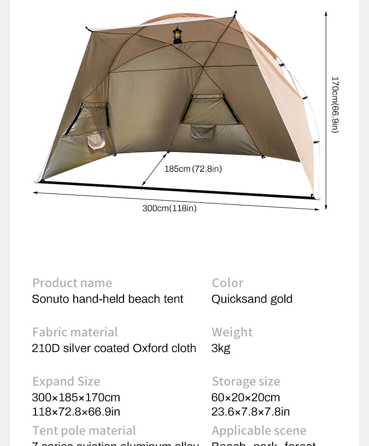 Sonuto Outdoor 4-7 People Camping Park Beach Tent Vinyl Sunscreen Folding Portable Canopy Rainproof And Sunscreen Shelter