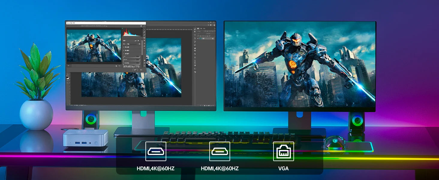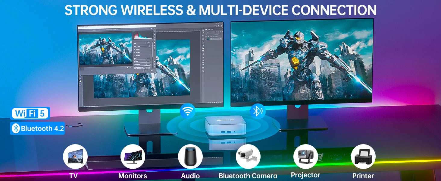 Der SOYO M4 Air N95 Mini PC kombiniert durchdachte Hardware und ein platzsparendes Design, das sich nahtlos in moderne Arbeitsumgebungen einfügt. Egal, ob Sie mehrere Browser-Tabs gleichzeitig geöffnet haben, Videokonferenzen abhalten oder multimediale Inhalte wiedergeben möchten – dieser Mini-PC ist darauf ausgelegt, Ihre Arbeit effizienter zu gestalten. Die Kombination aus einem leistungsfähigen Intel N95-Prozessor, großzügigem Arbeitsspeicher und schneller interner Speicherung sorgt für einen reaktionsschnellen Arbeitsalltag ohne überdimensionierten Platzbedarf.