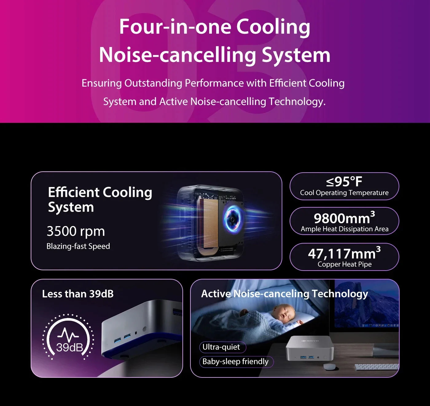 - Leicht zu platzieren: Dank kompakter Maße kann der Mini-PC flexibel positioniert werden, ohne Raum zu dominieren.