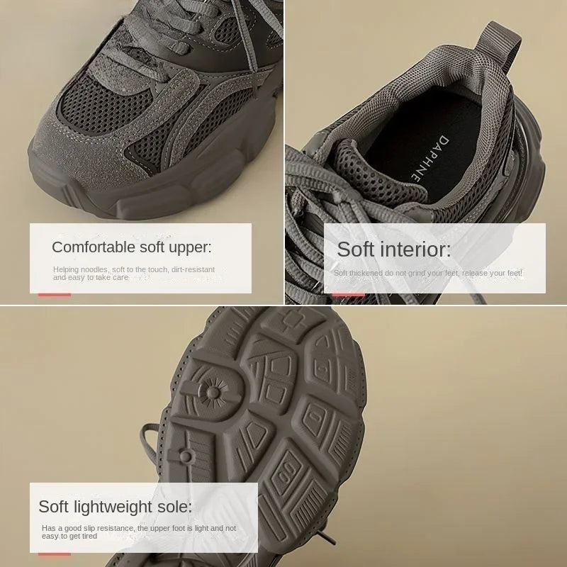 Diese Sport Damen Athletic Schuhe sind eine ausgewogene Kombination aus Komfort, Funktionalität und Modebewusstsein. Die vulkanisierte Sohle bietet eine haltbare Basis, während das leichte, atmungsaktive Obermaterial für angenehmes Tragegefühl bei sommerlichen Temperaturen sorgt. Ob beim leichten Lauf, beim Besuch im Fitnessstudio oder als stylischer Begleiter in der Freizeit – dieser Sneaker deckt eine breite Palette an Anforderungen ab und lässt sich mühelos in verschiedene Alltagslooks integrieren. Die klare, koreanisch inspirierte Optik macht das Modell zu einer flexiblen Wahl für Damen, die Wert auf modernes Design und praktische Eigenschaften legen.