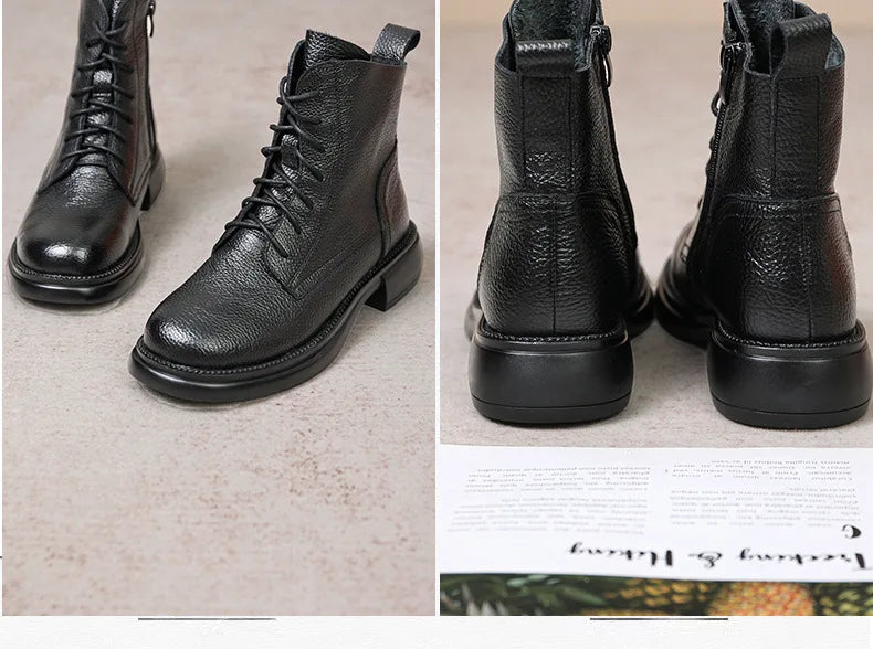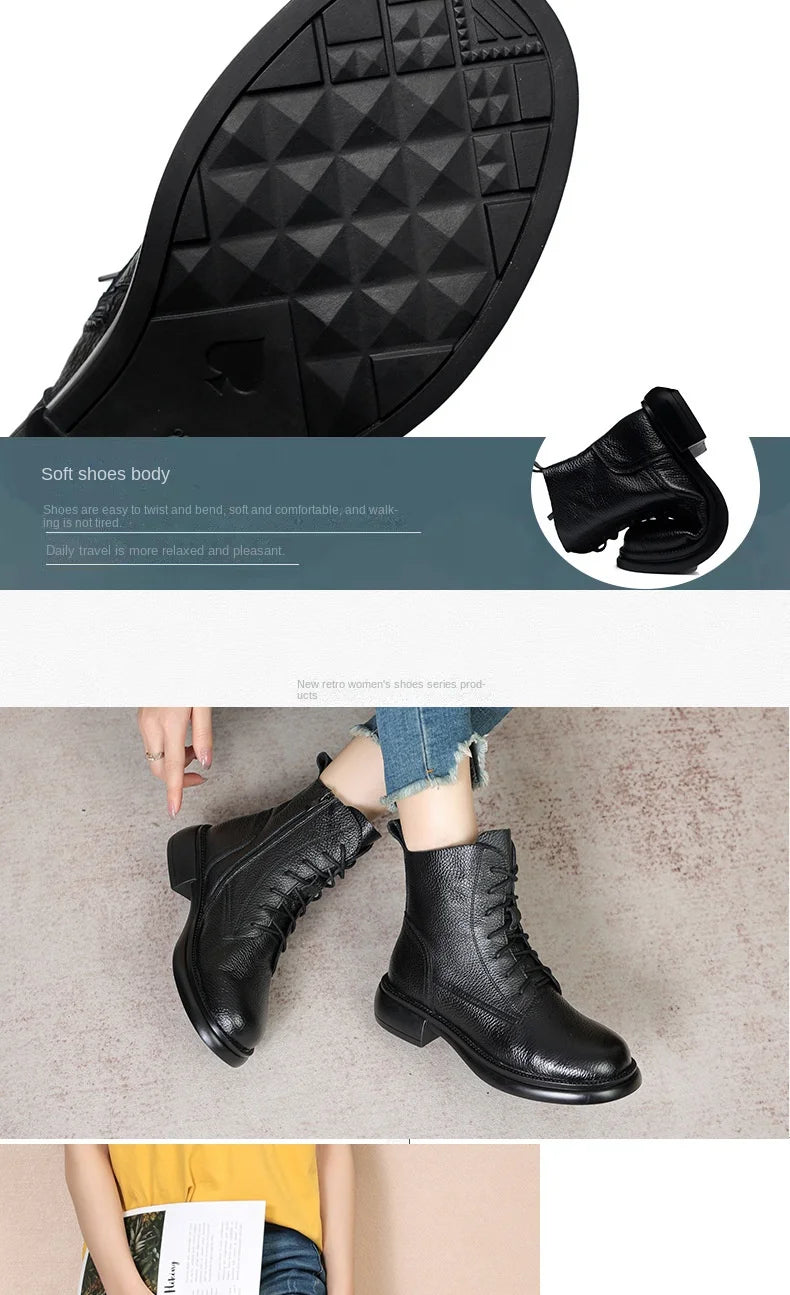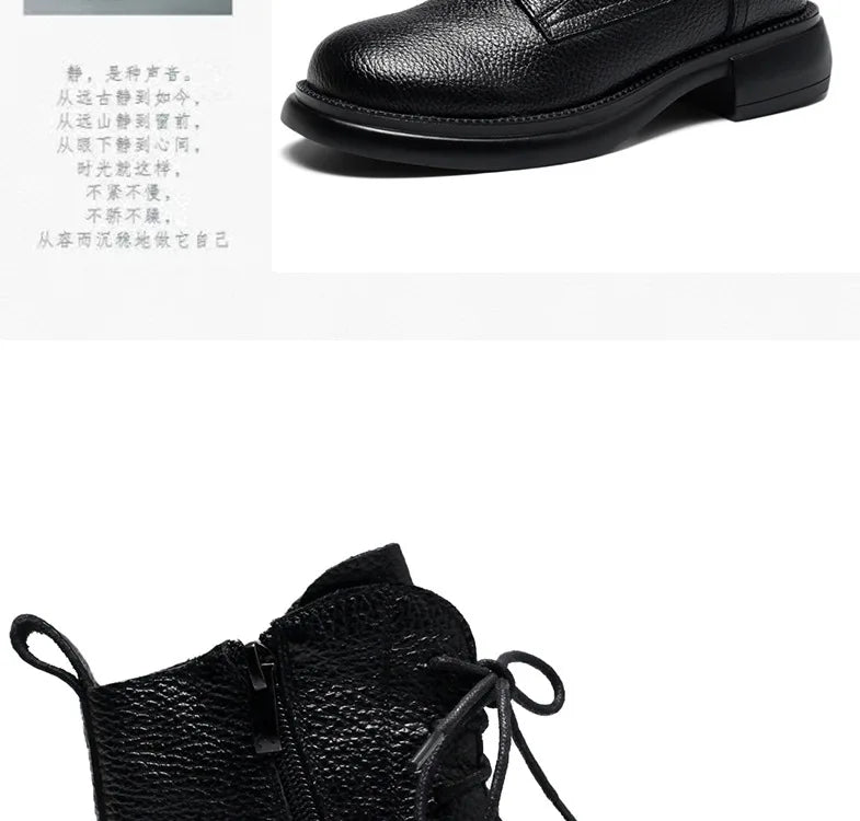 Frühling Dame Knöchel Stiefel 2025 - Echtes Kuh Leder Platform Schuhe - Frauen Winter Jugend Mädchen Weiche Sohle Dicke Absatz Ritter Schnee Stiefel
