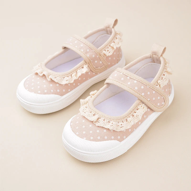 Lace-Canvas Princess-Flat – Bequeme und verspielte Mädchen-Schuhe mit Polka-Dot-Charme