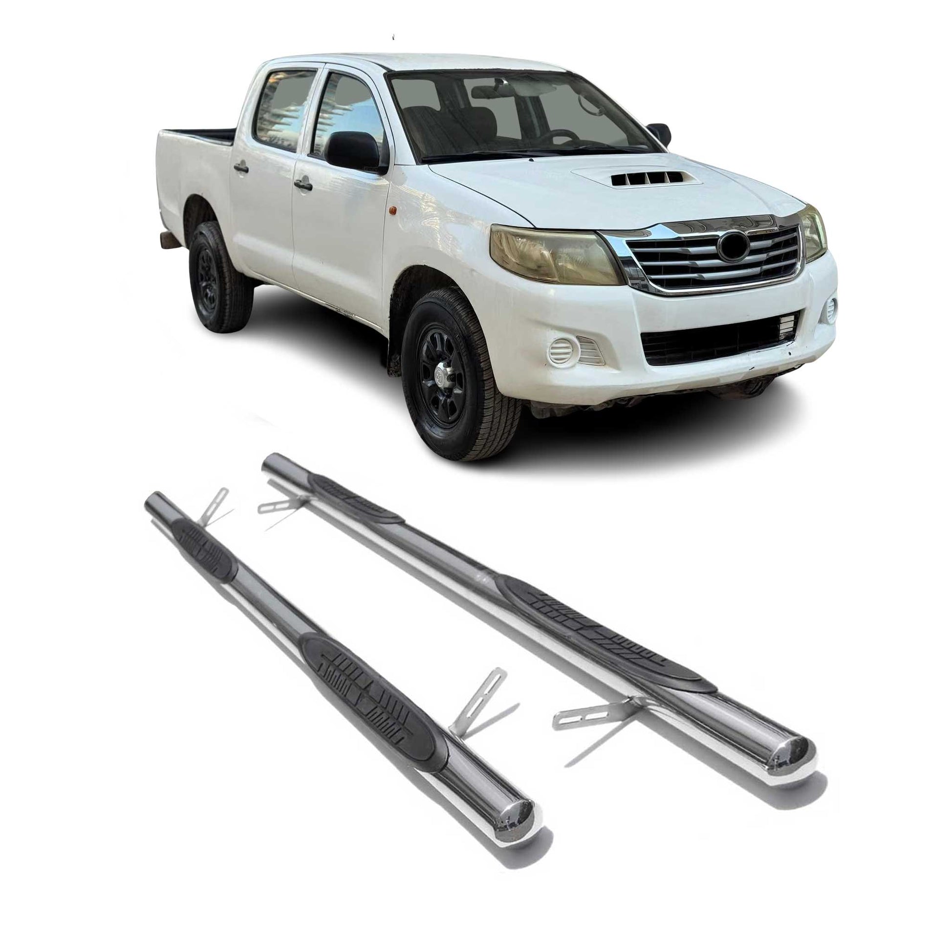 StahlTrittbretter Schwellerrohre für Toyota Hilux DoubleCab 2005-2015 Silber
