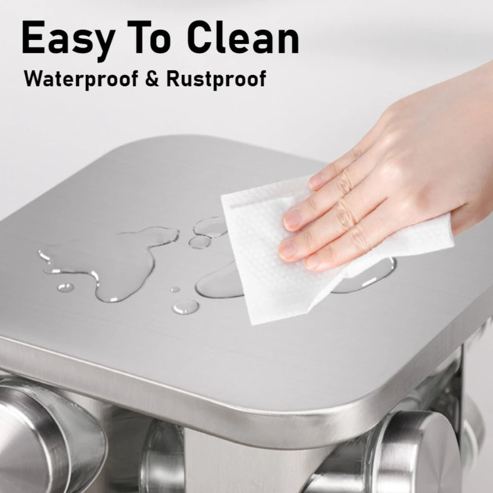 Stainless Steel Spice Rack Rotating Seasoning Set Vertical Spice Sorting Rack Square Condiment Organizer Salt Sugar Containers
