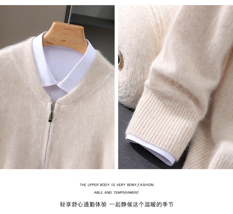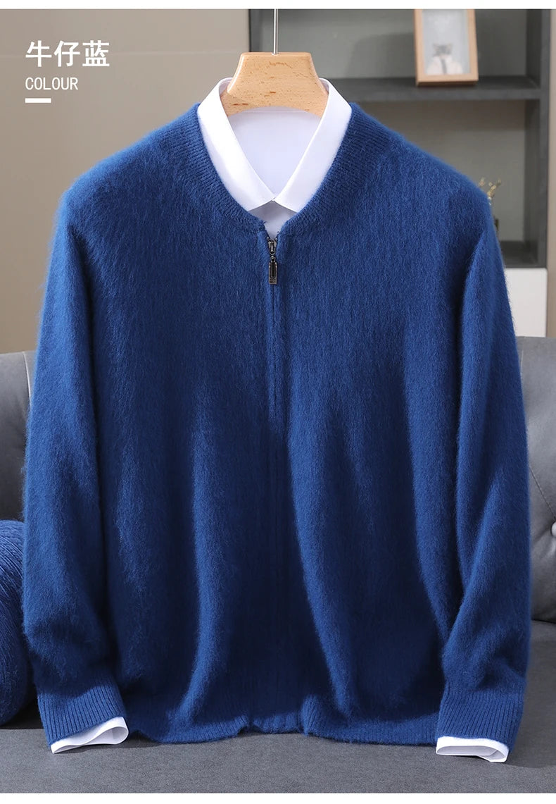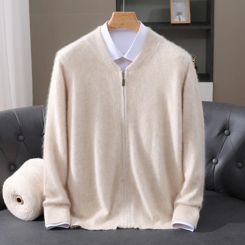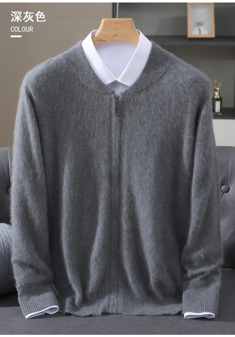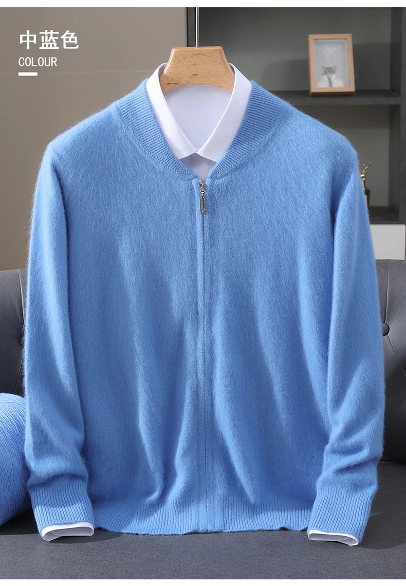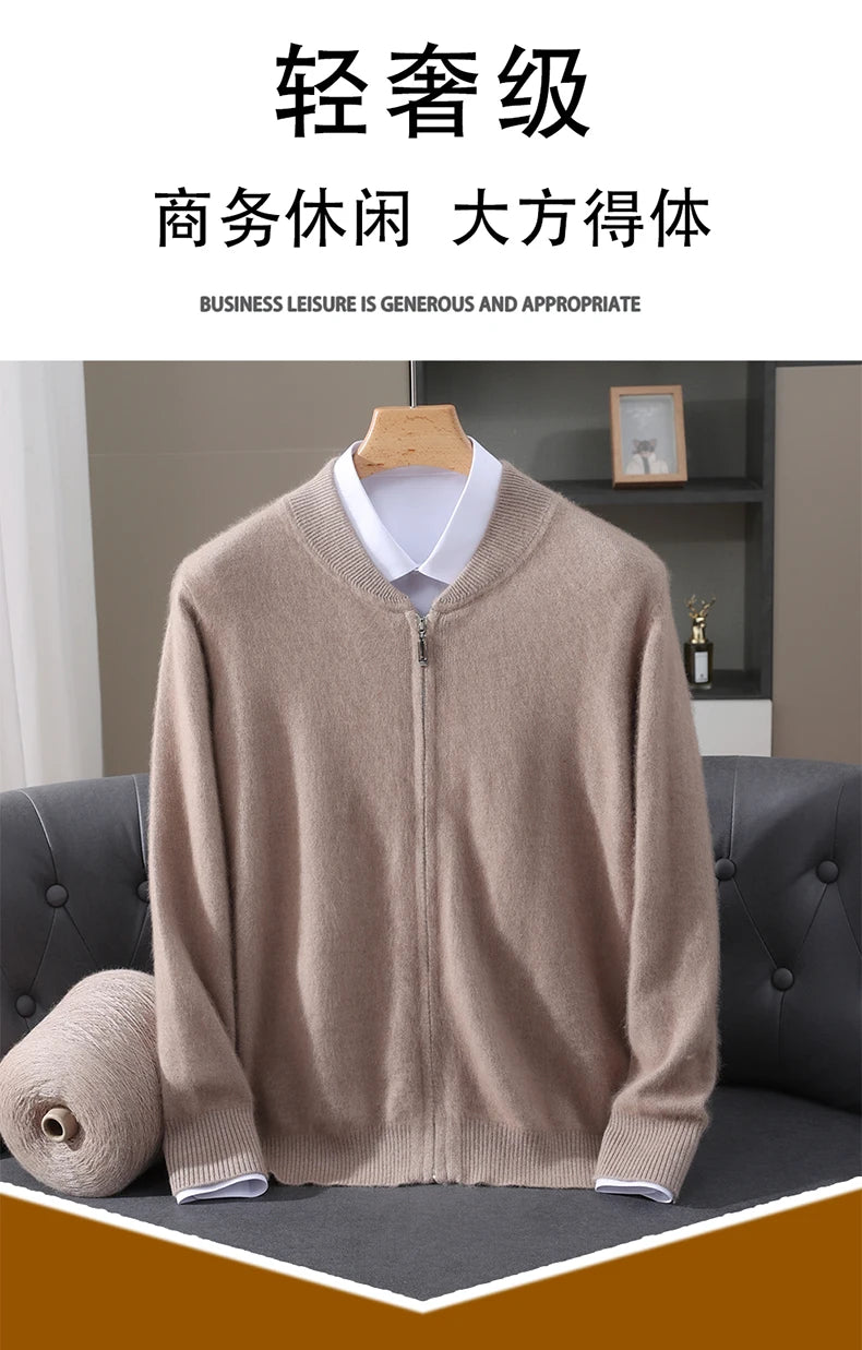 Diese Strickjacke kombiniert feines Nerz-Kaschmir-Finish mit praktischem Reißverschluss für stilvollen Schutz gegen Kälte und anspruchsvolle Alltagstauglichkeit. Der klare Schnitt und der hochabschließende Stehkragen machen dieses Modell zu einer sofort einsetzbaren Ergänzung Ihrer Garderobe – ideal für schlichte, aber gepflegte Looks in Herbst und Winter.