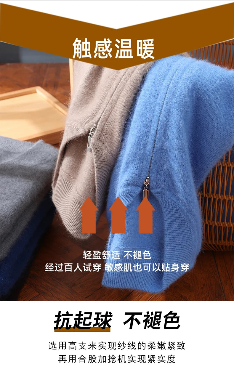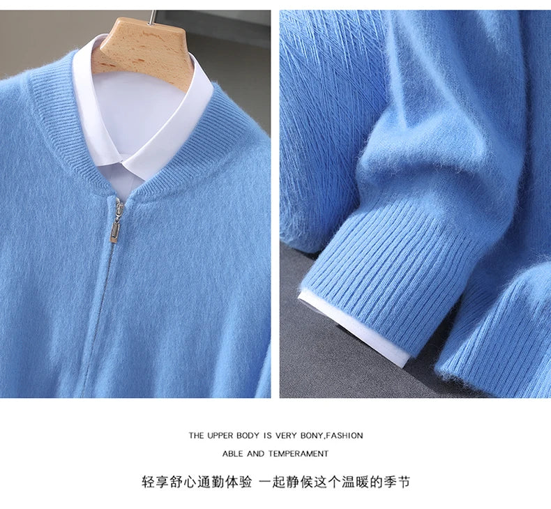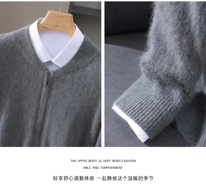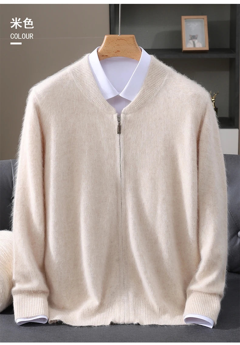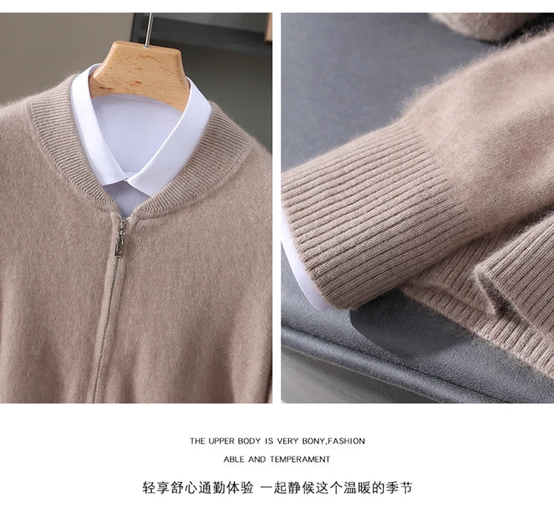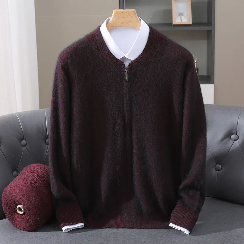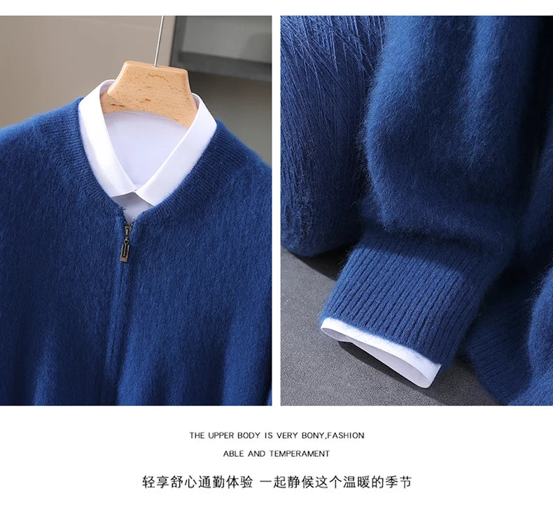 Diese Strickjacke kombiniert feines Nerz-Kaschmir-Finish mit praktischem Reißverschluss für stilvollen Schutz gegen Kälte und anspruchsvolle Alltagstauglichkeit. Der klare Schnitt und der hochabschließende Stehkragen machen dieses Modell zu einer sofort einsetzbaren Ergänzung Ihrer Garderobe – ideal für schlichte, aber gepflegte Looks in Herbst und Winter.