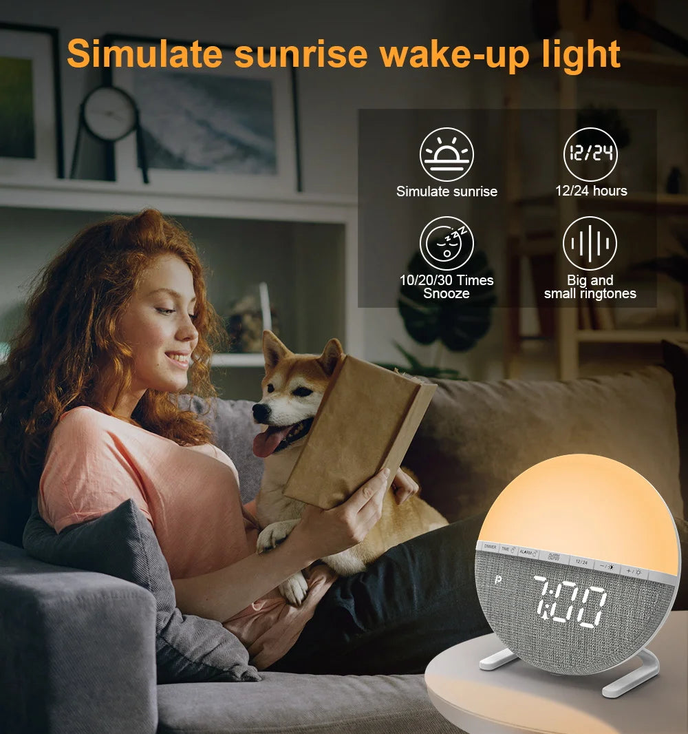 Sunrise Alarm Clock Wake Up Light Clock Night Light Sunrise Sunset Simulation Digital Clock Desk Clocks