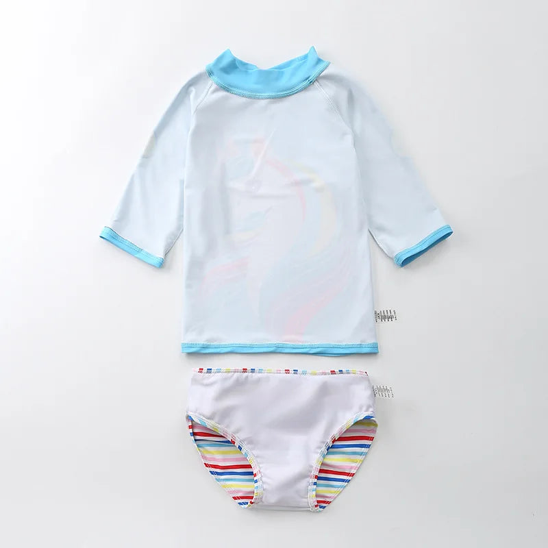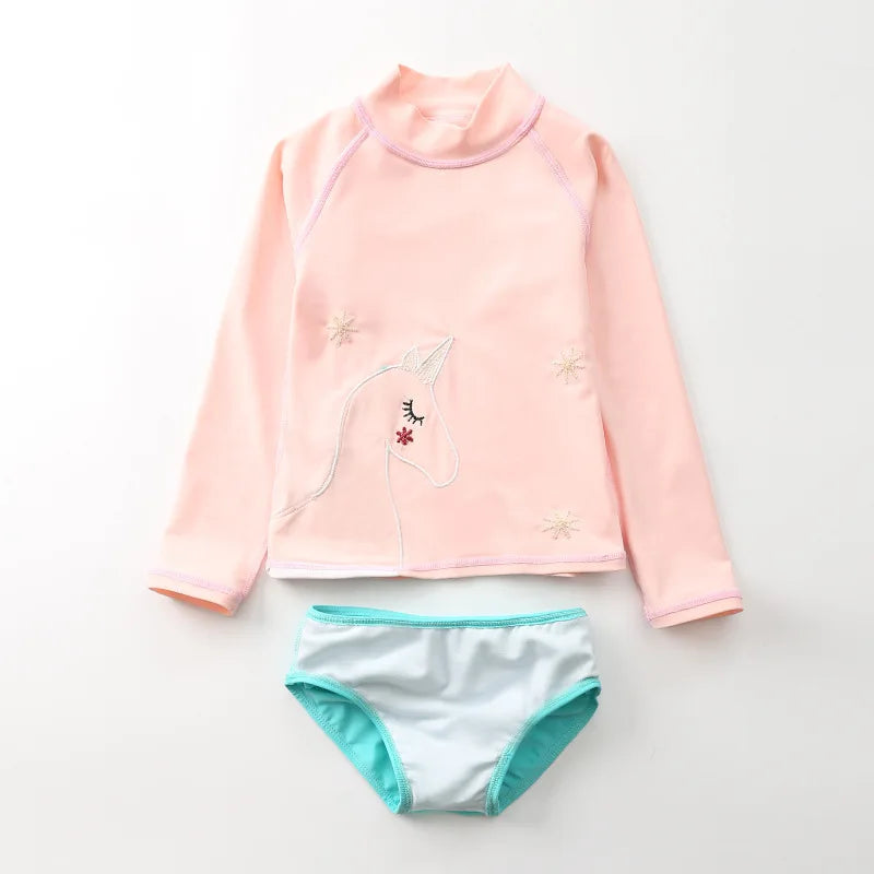 - 1x Langärmeliges Rash Guard Oberteil mit Einhorn-Motiv