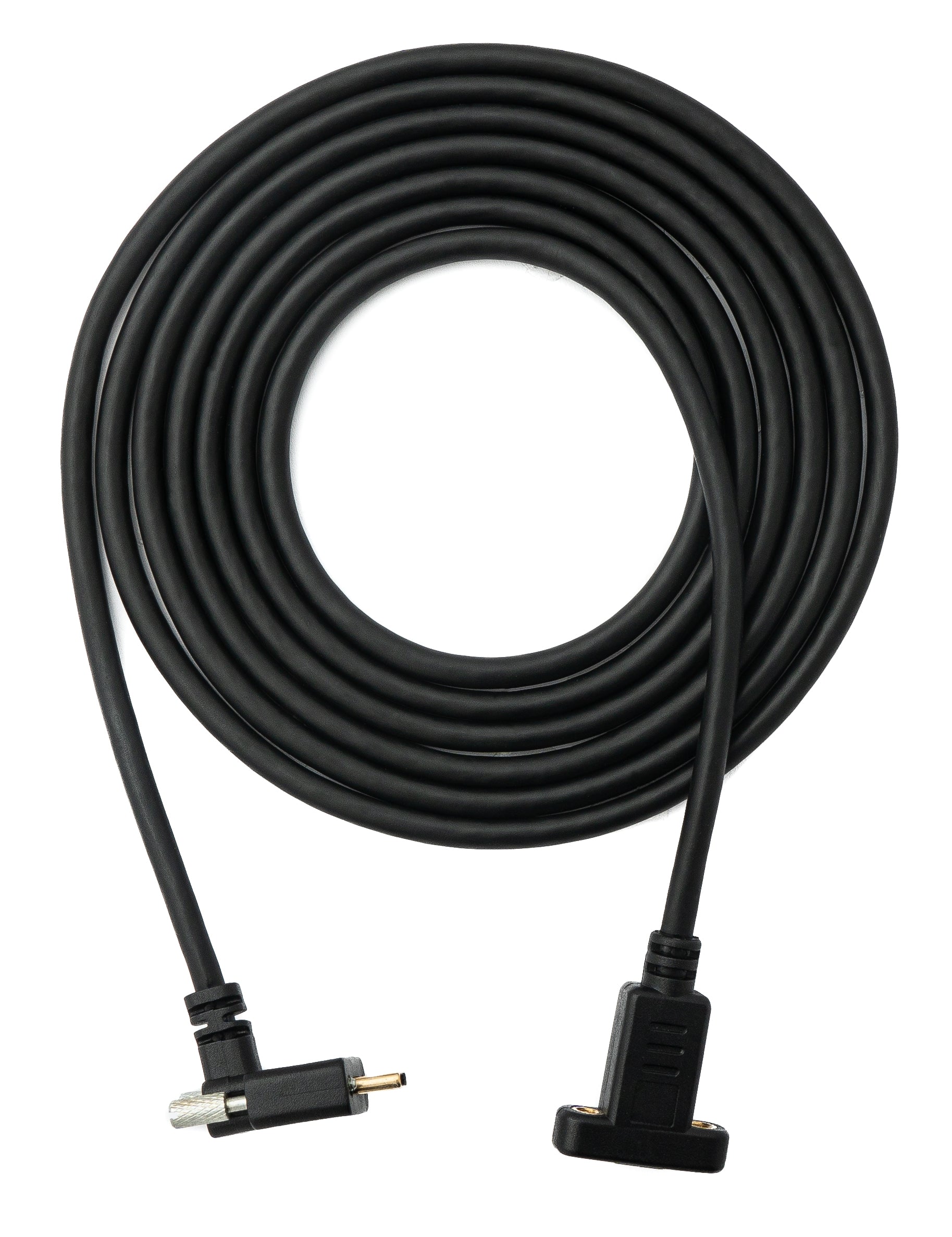 - Beide Anschlüsse sind anschraubbar (Panel Mount) und der C-Stecker ist gewinkelt (down-/up-angled) für flexible Montagemöglichkeiten.