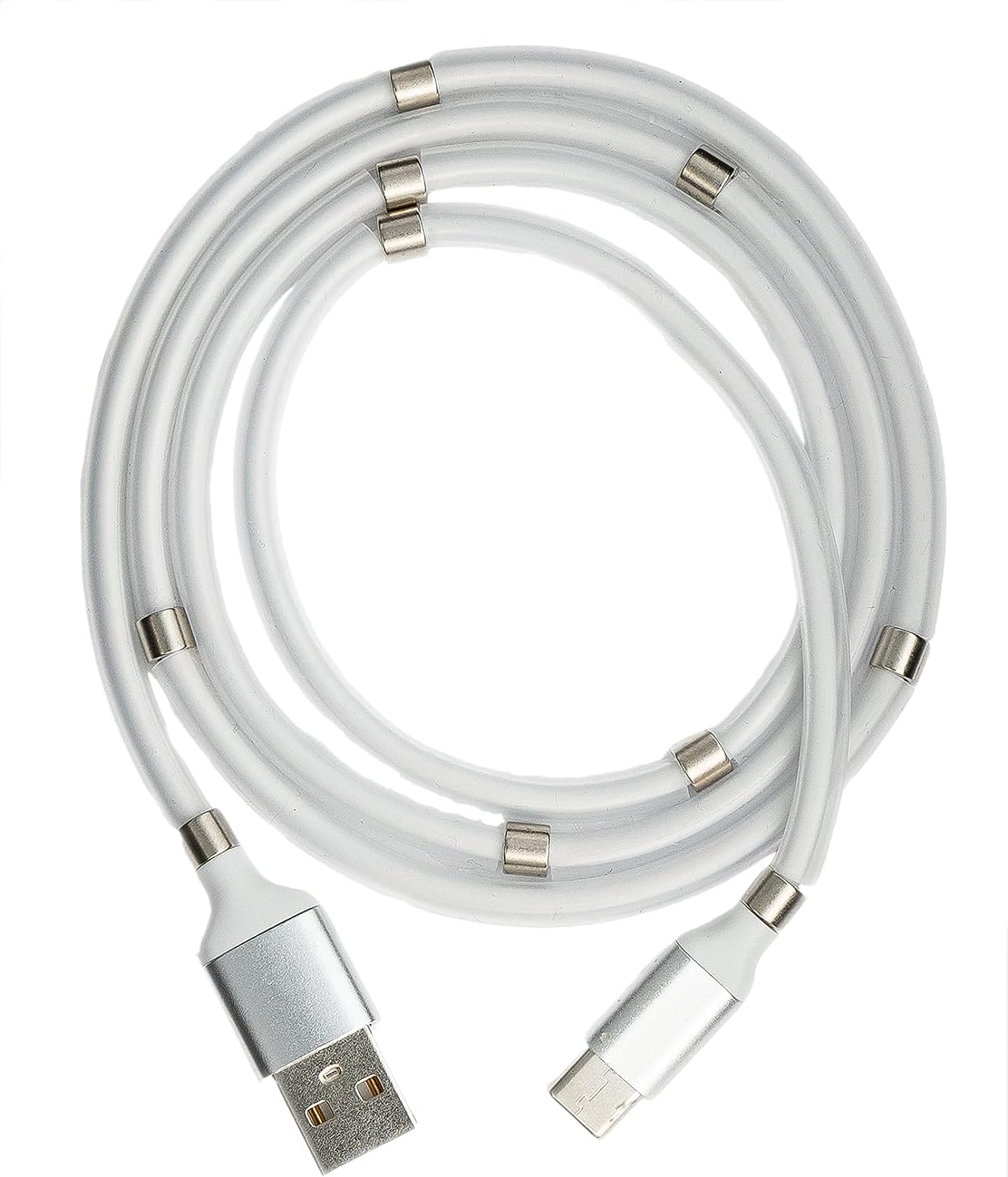 SYSTEM-S USB 3.1 selbstaufrollendes Kabel 1 m Typ C Stecker zu 2.0 Typ A Stecker in Weiß