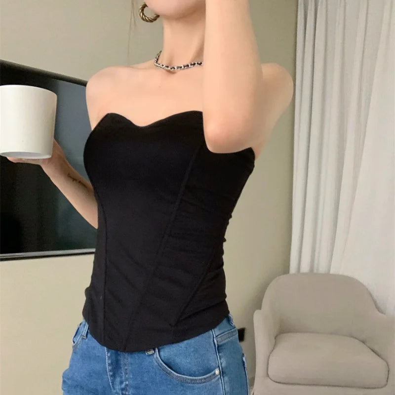 Tanks Tops Women Off-shoulder Outerwear Tube-top elegant Spicy Girls Summer European Style Streetwear Slim Defined Waist Popular