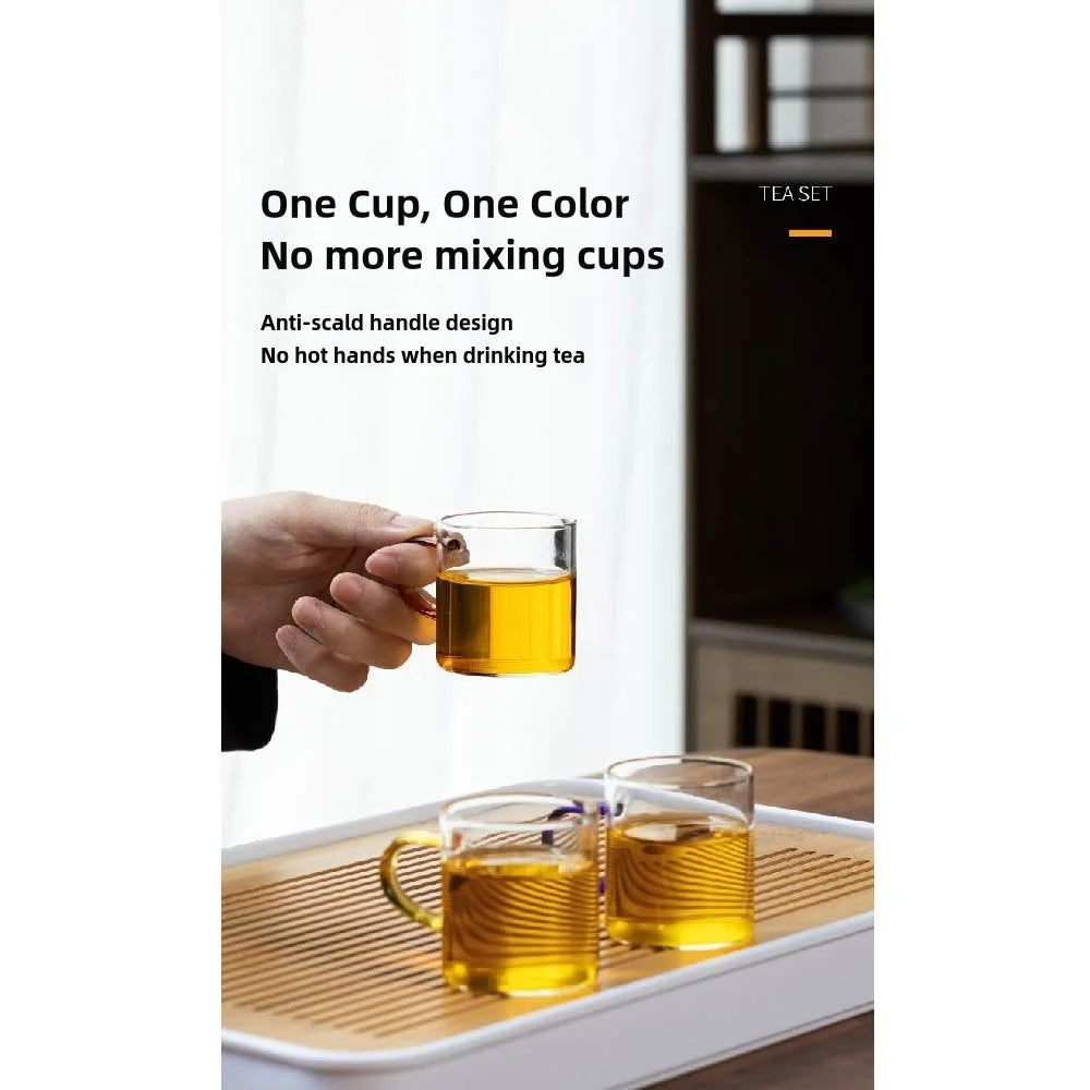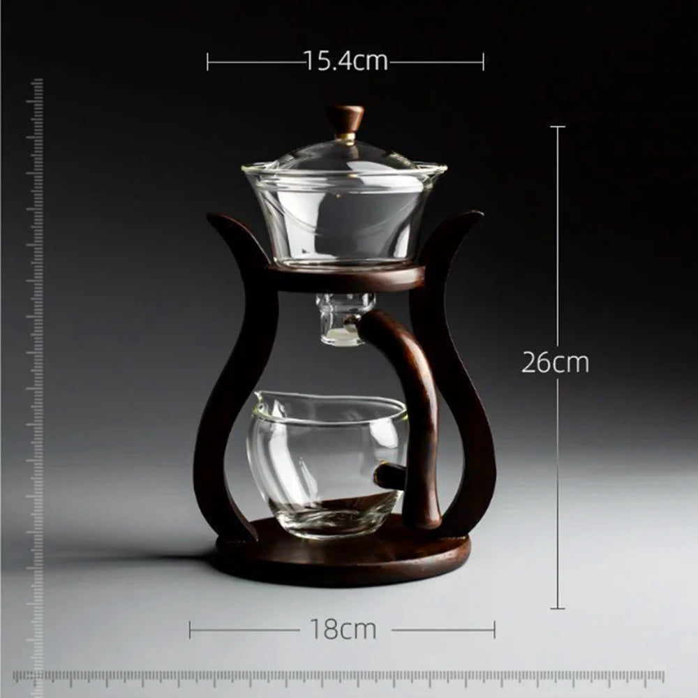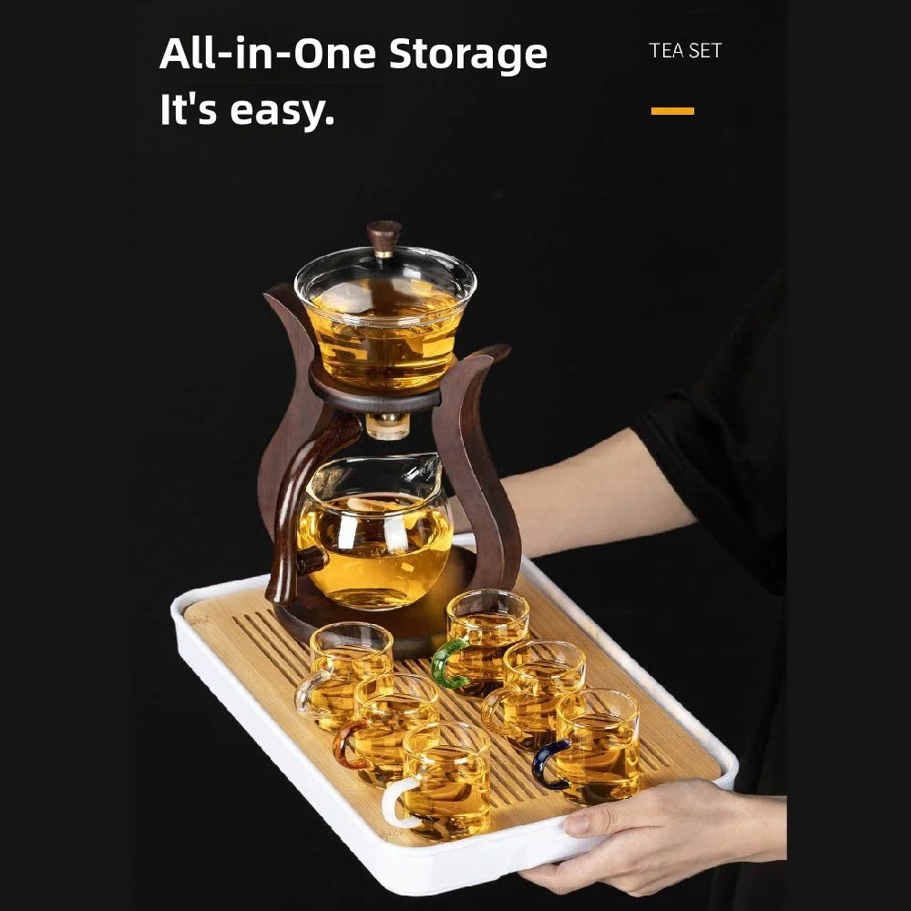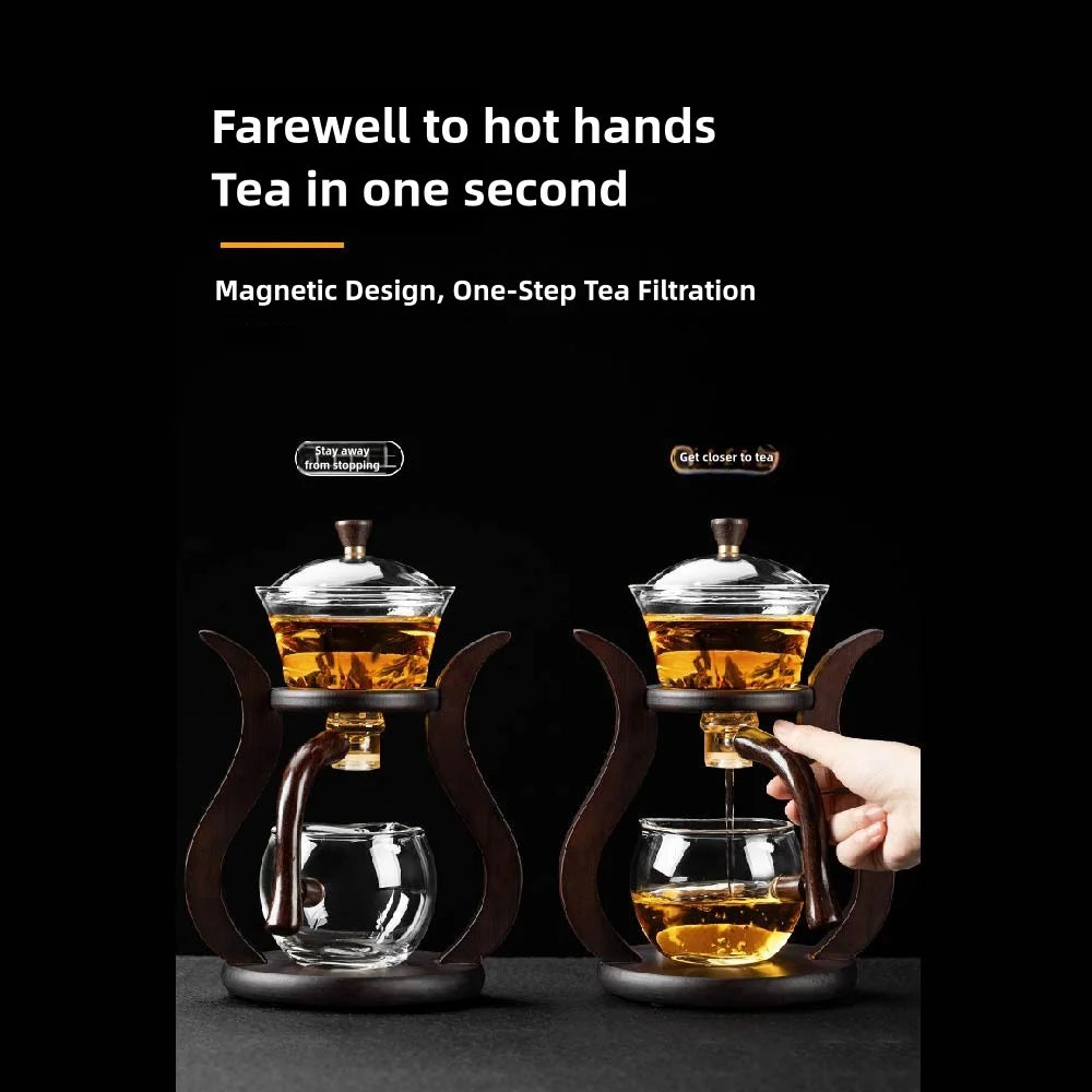 Tea Pot Glass Kettle Automatic Teapot with Strainer Magnetic Infuser Wood Holder Heat Resistant Coffee Pot Bowl Cups Set Jug 주전자