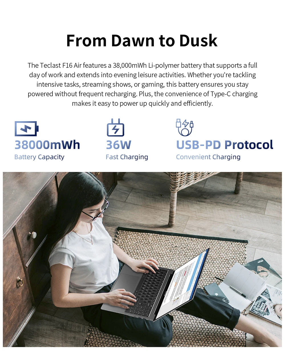Das Teclast F16Air verbindet schlankes Design, lange Akkulaufzeit und leistungsfähige Intel N95-Performance in einem flexiblen 16,1-Zoll-Convertible – ideal für Beruf, Studium und kreatives Arbeiten unterwegs.