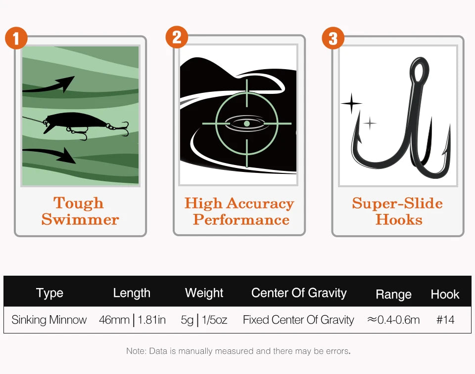 - 1 x TSURINOYA 46S Sinking Minnow Intruder (46 mm, 5 g)