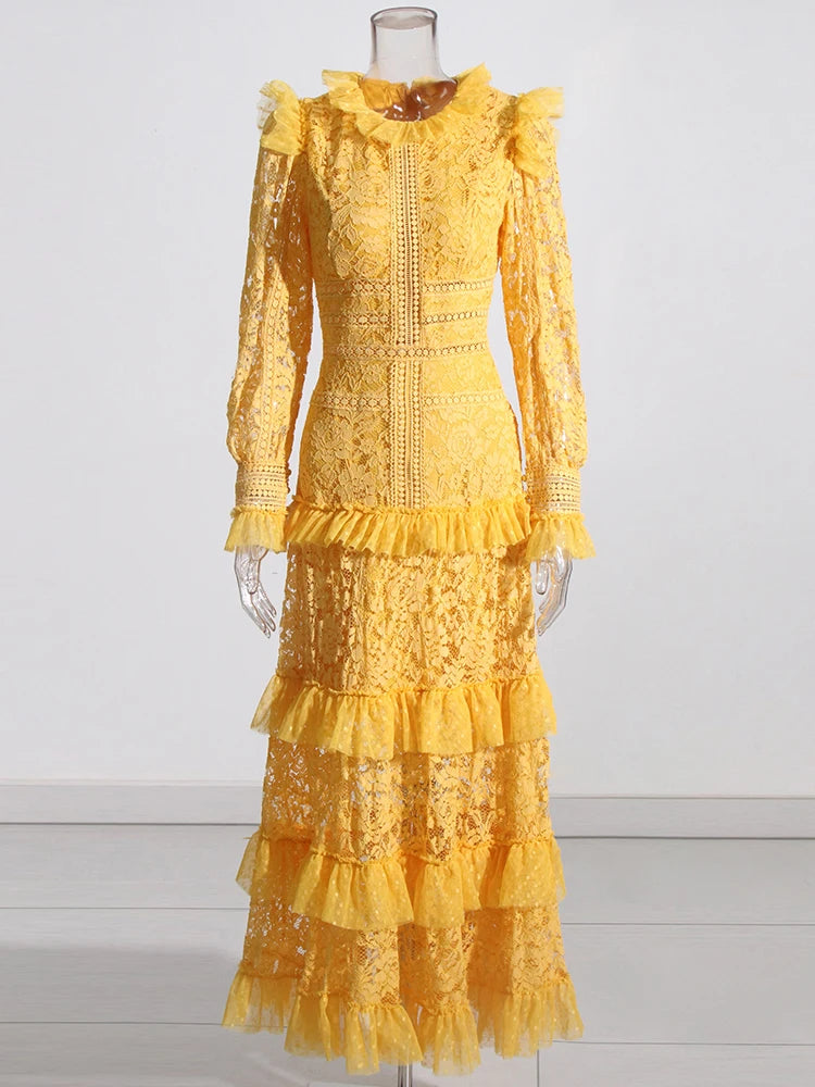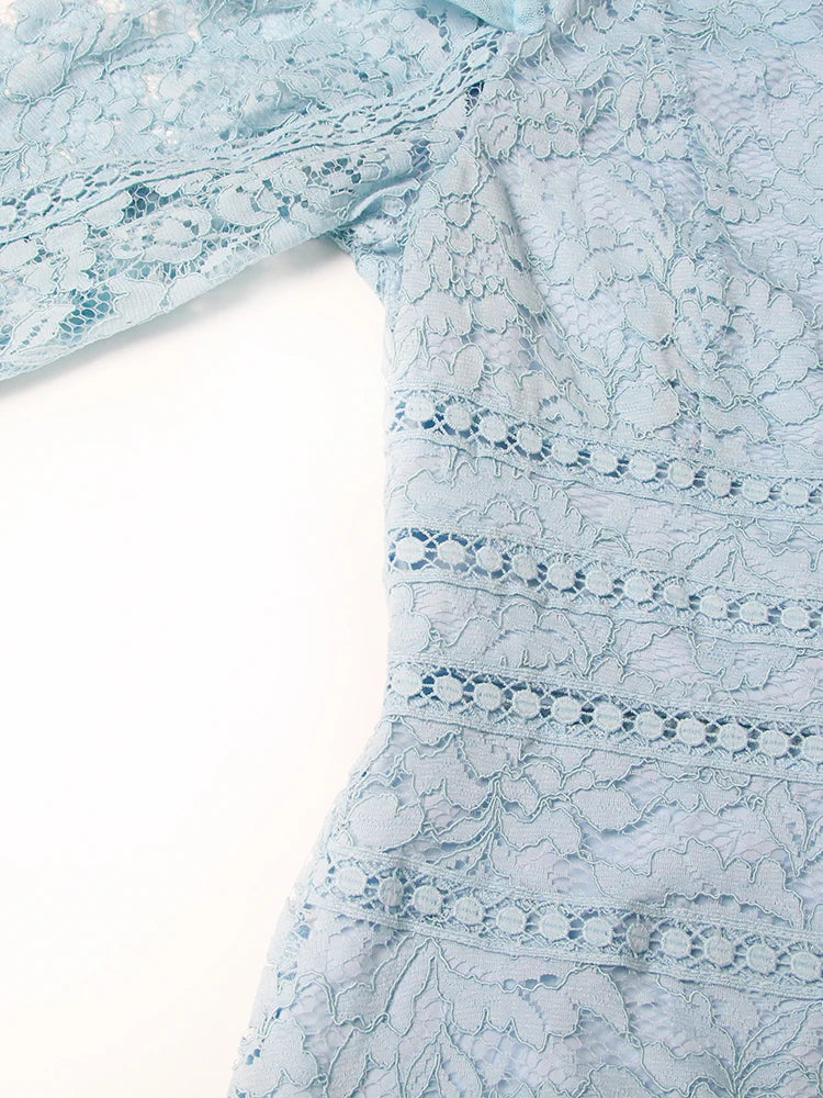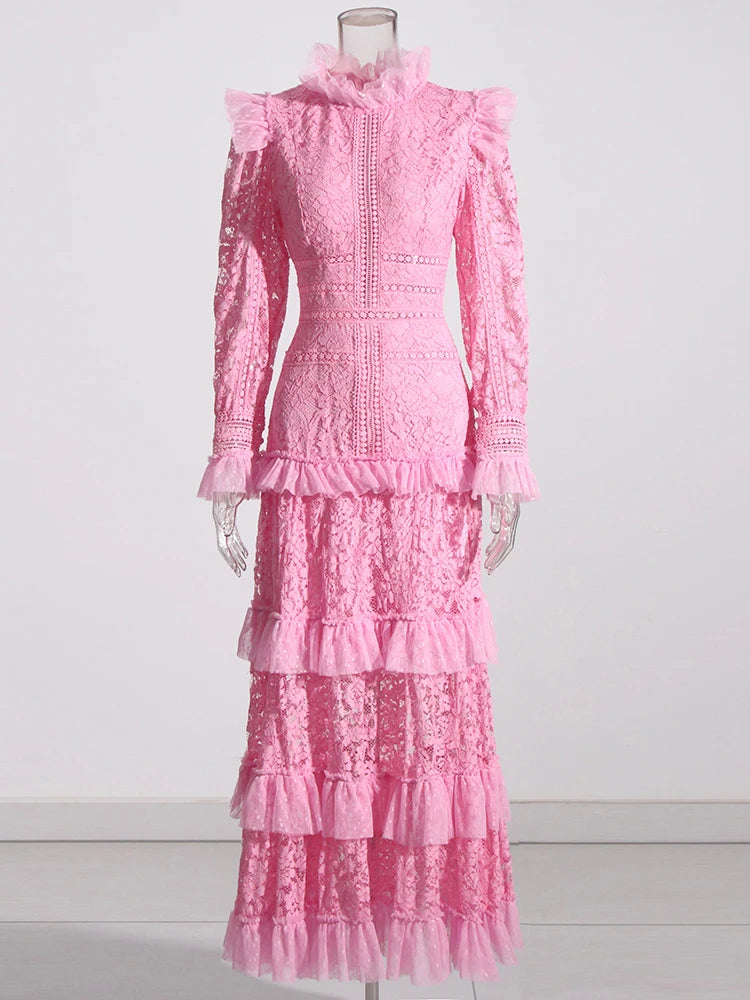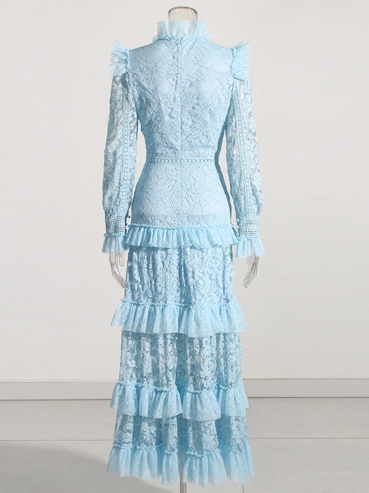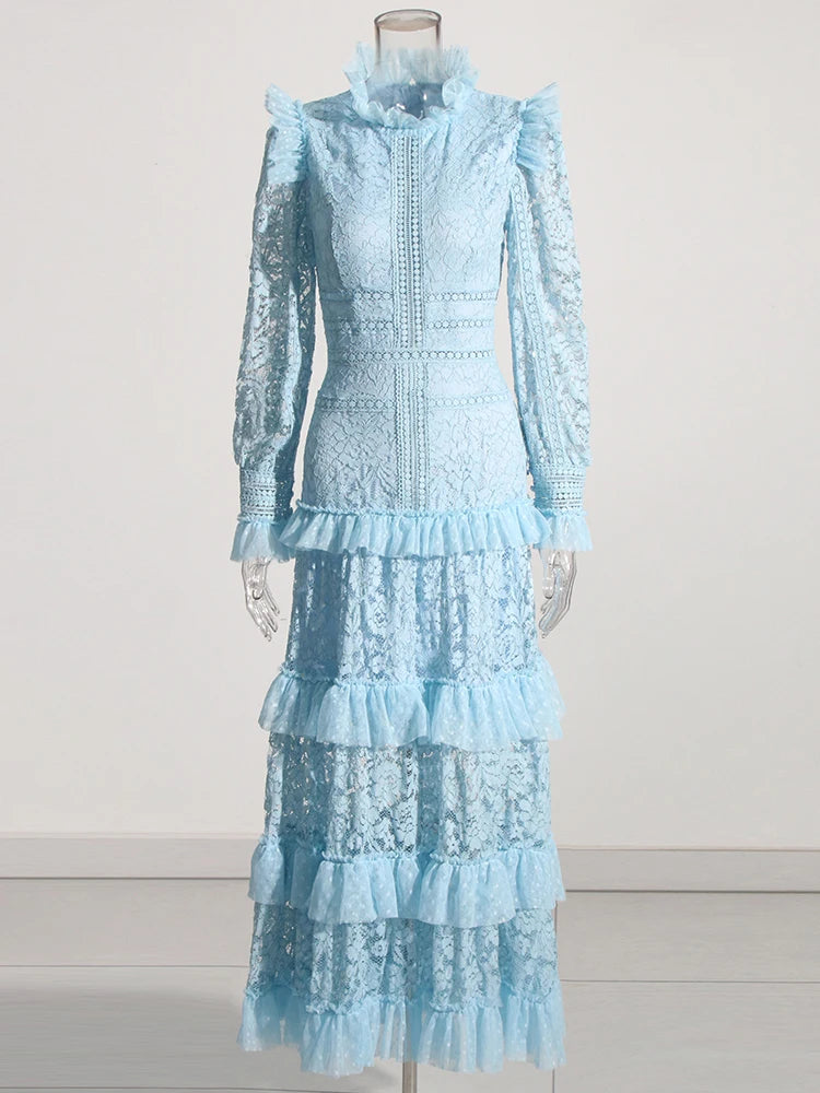 TWOTWINSTYLE Elegant Dresses For Women Stand Collar Long Sleeve High Waist Embroidery Slim Dress Female Fashion Clothing 2023