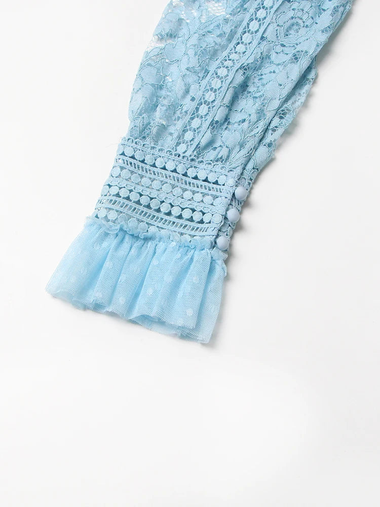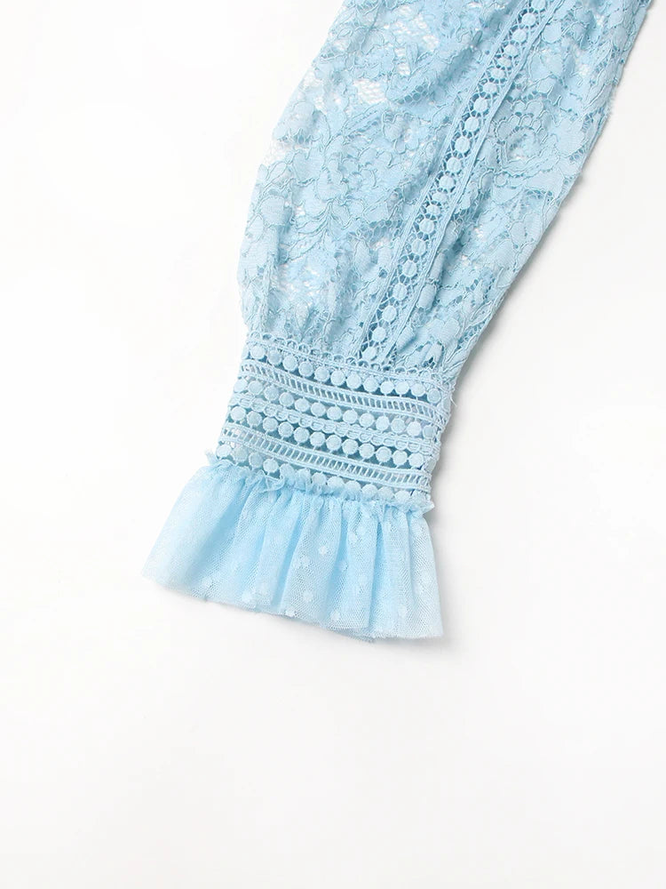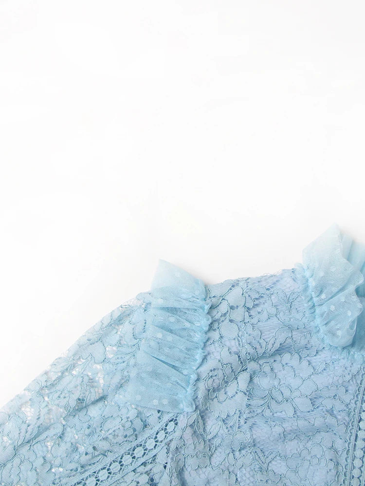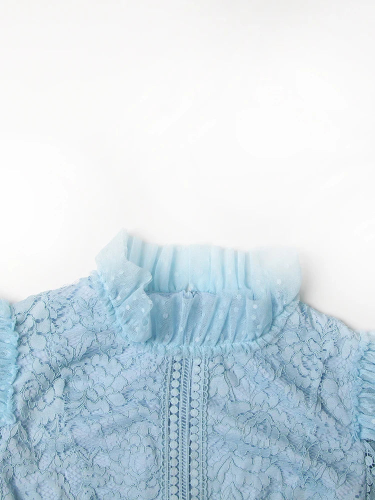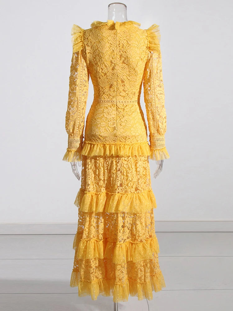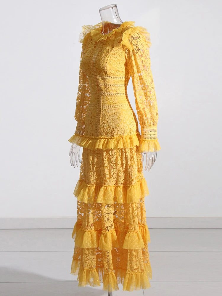 TWOTWINSTYLE Elegant Dresses For Women Stand Collar Long Sleeve High Waist Embroidery Slim Dress Female Fashion Clothing 2023