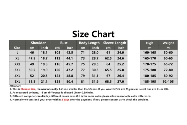- Größenhinweis: Asian Sizing (z. B. XL (Asian) 60-65KG, Länge ca. 112 cm)