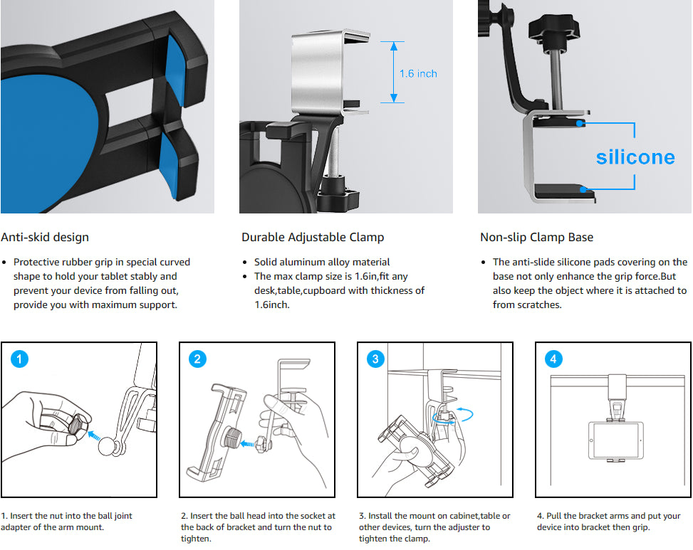 - 1 x YNMIWEIM Küchen-Tablet-Halter (Metallarm mit Klemme)
