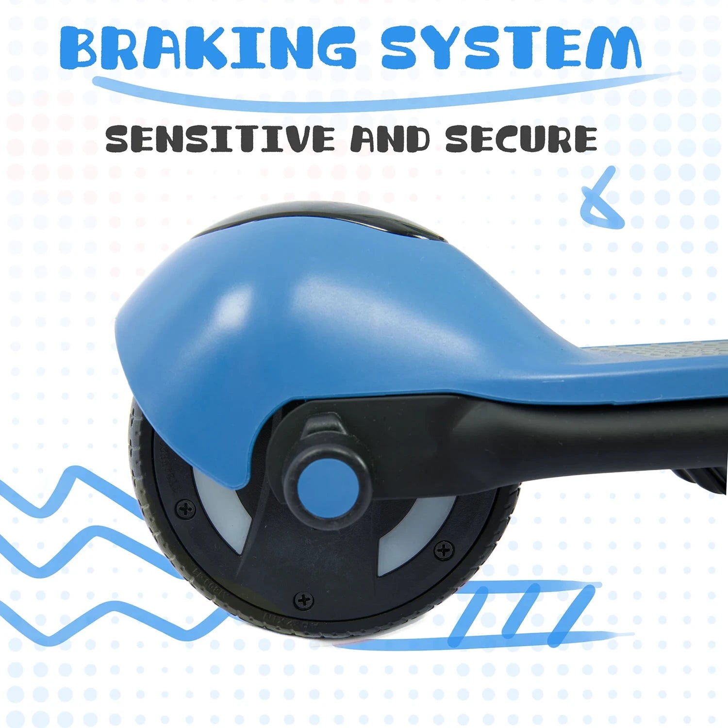- Eine elektronische Bremse sorgt für zuverlässige Verzögerung und Stoppkontrolle – zentrale Merkmale des Vankel Elektroroller Kinder 6,5 Zoll Bluetooth Licht Sicherheit.