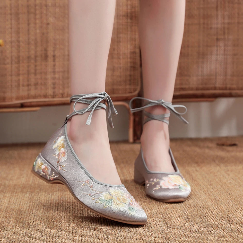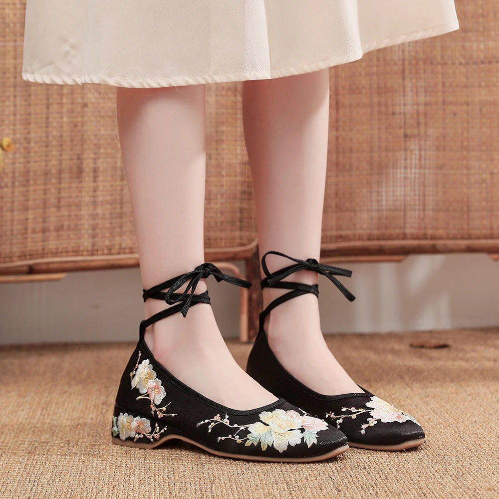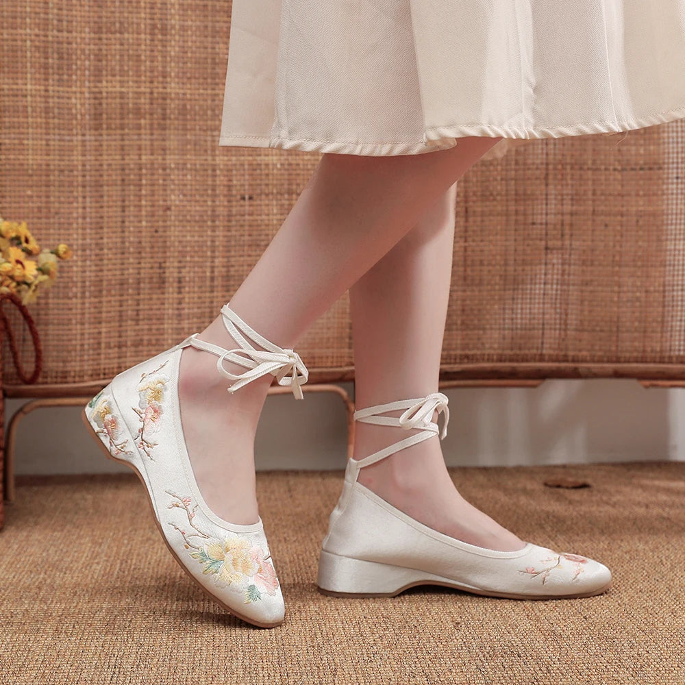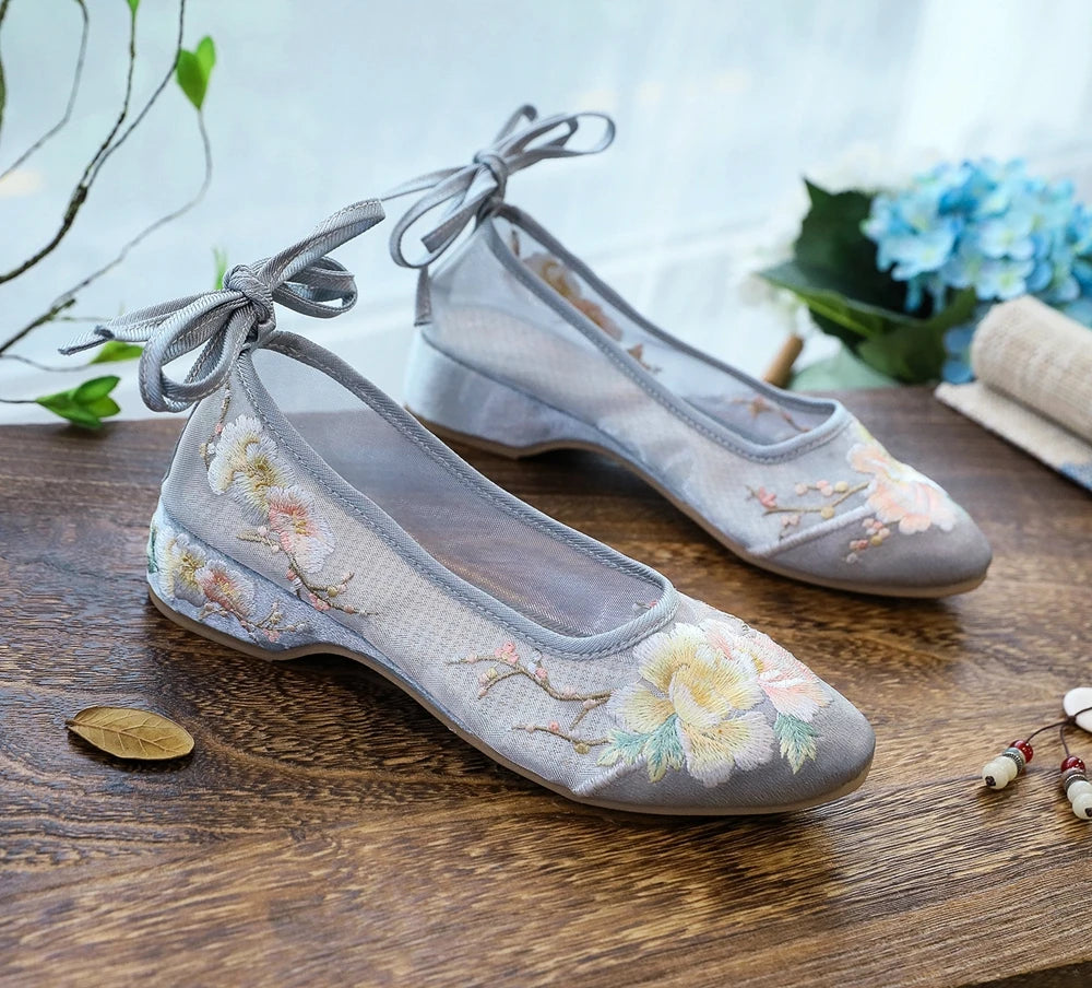 Ballerinas 2025: Veowalk Long Ankle Strap Summer Women Gauze Mesh - Embroidered Ballet Flats Breathable Comfortable Walking Shoes Elegant Lady Collection