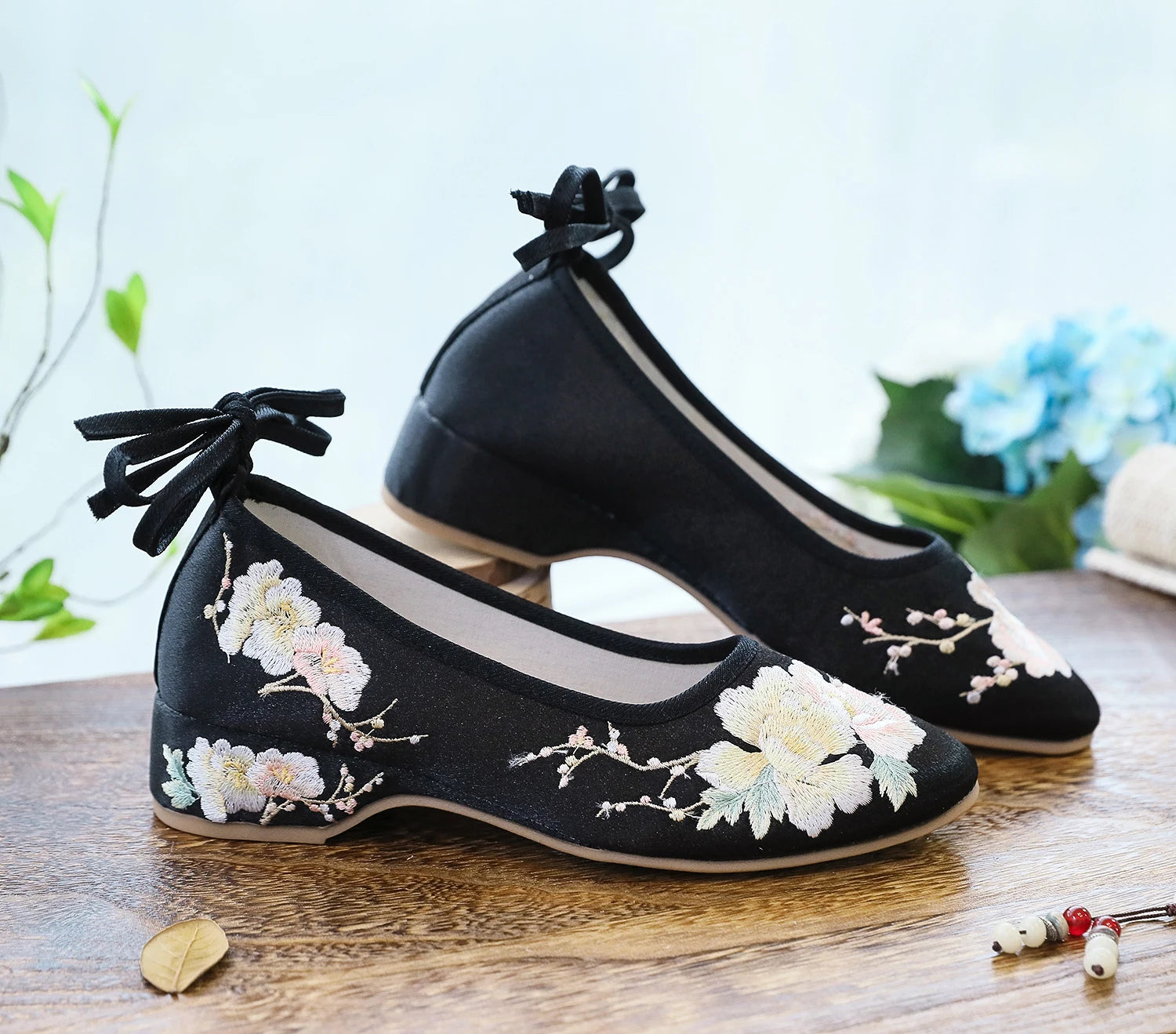- Fein gestickte Details verleihen den Ballerinas eine elegante, feminine Optik, die sich leicht mit Alltags- oder Bürooutfits kombinieren lässt.