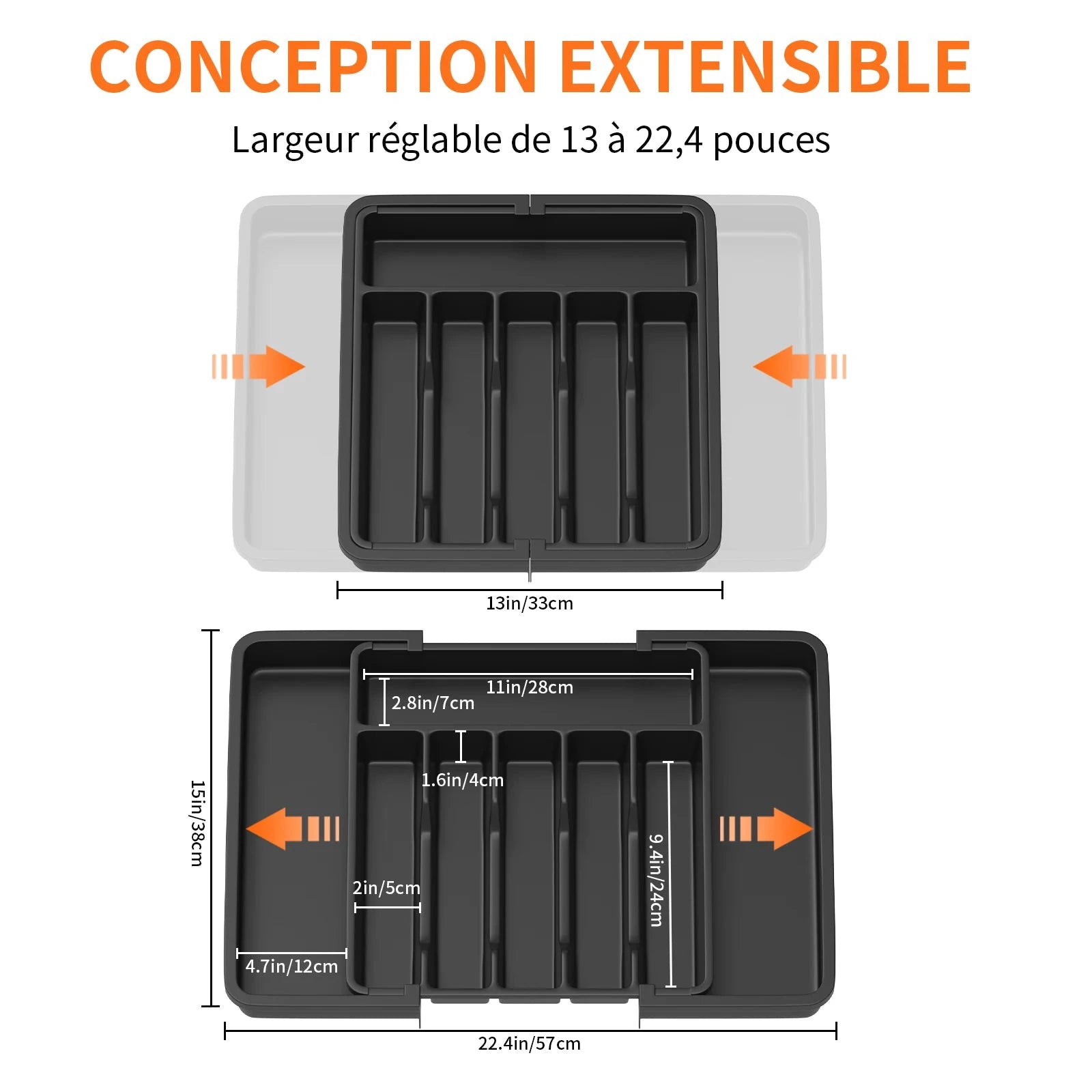 ◾ Expandable design with adjustable width, 13-22.4 inches, compatible with different drawer sizes.
